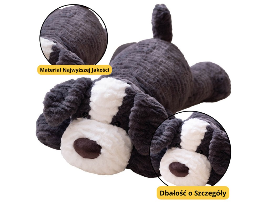 Tmavě šedý plyšový pejsek je okouzlující a výjimečně měkký plyšák, který se jistě stane tím nejlepším společníkem každého dítěte. Vyrobeno z extrémně jemného a na dotek příjemného materiálu, pejsek poskytuje batolatům pohodlí, teplo a bezpečí při mazlení, hraní a spánku. Měkká struktura materiálu je ideální pro hlazení a mazlení - jak pro děti, tak pro dospělé.