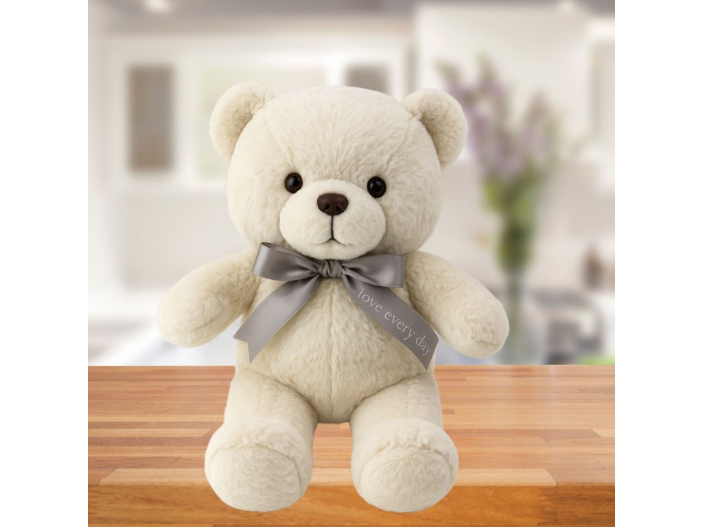 Nejcharakterističtějším prvkem medvěda je stříbrná saténová mašle s nápisem "Happy every day", díky kterému je hračka jedinečná a elegantní. Zaoblená hlava, přátelské oči, velký nos a široké tlapky dodávají medvědovi výjimečně pěkný vzhled a budují v dítěti pocit bezpečí a blízkosti. Medvídek je díky svým výhodným rozměrům lehký, snadno přenosný a ideální pro každodenní mazlení.