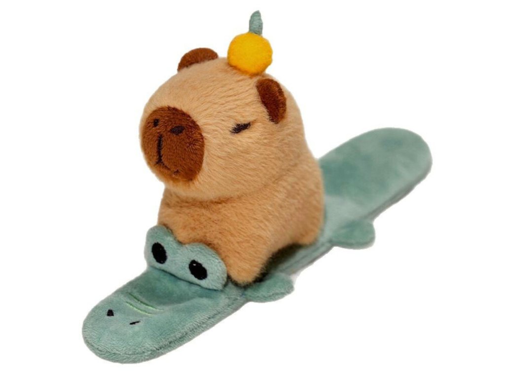 Tento plyšový náramek s kapybarou je jedinečný doplněk pro děti, který kombinuje dekoraci a hračku v jednom. Kapybara, vyrobená z měkkého, mazlivého plyše, je umístěna na barevném náramku s krokodýlím motivem. Náramek se ovládá rychlým cvaknutím – lehkým klepnutím se omotá kolem zápěstí a dokonale padne do dětské ruky.