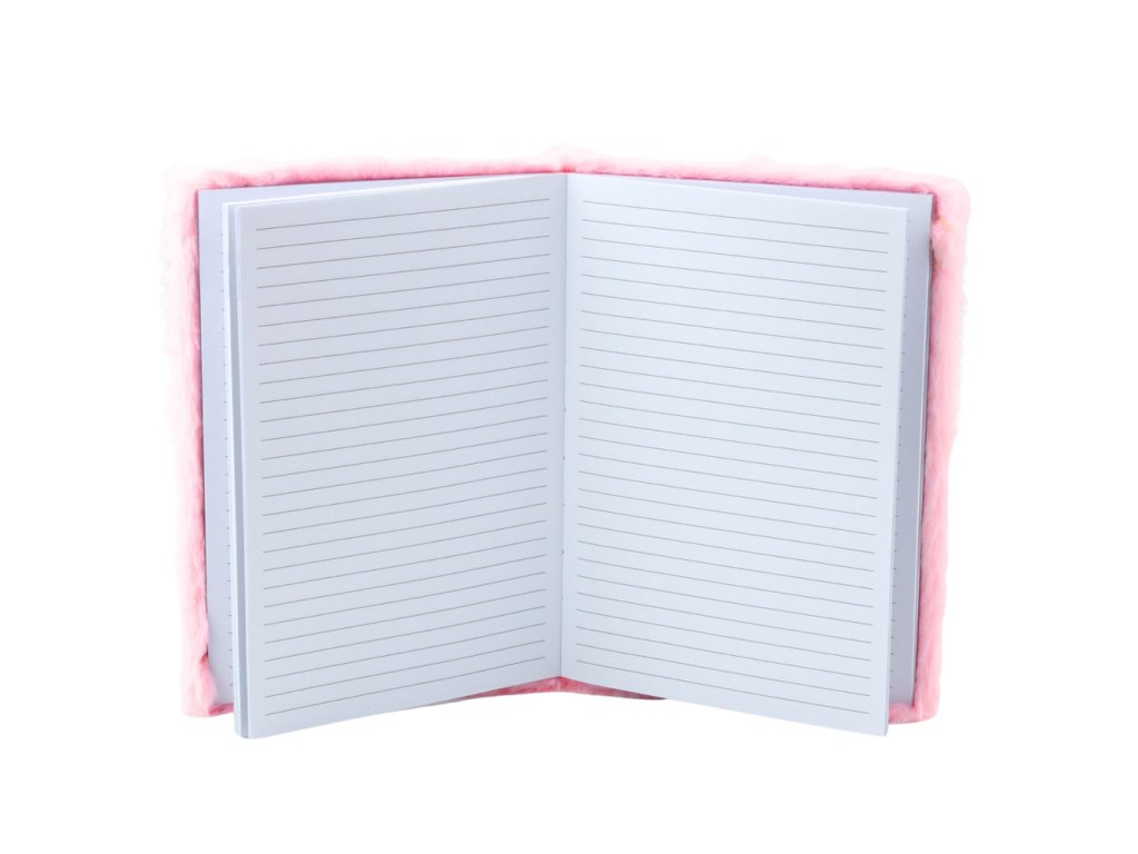 Potah je vyroben z měkkého, na dotek příjemného plyše ve světle růžové barvě. Uvnitř obsahuje 80 linkovaných stránek, které se skvěle hodí na poznámky, diář, školní sešit nebo kreativní deník. Díky formátu A5 a kompaktní velikosti se notebook skvěle vejde do tašky, batohu nebo na školní lavici.