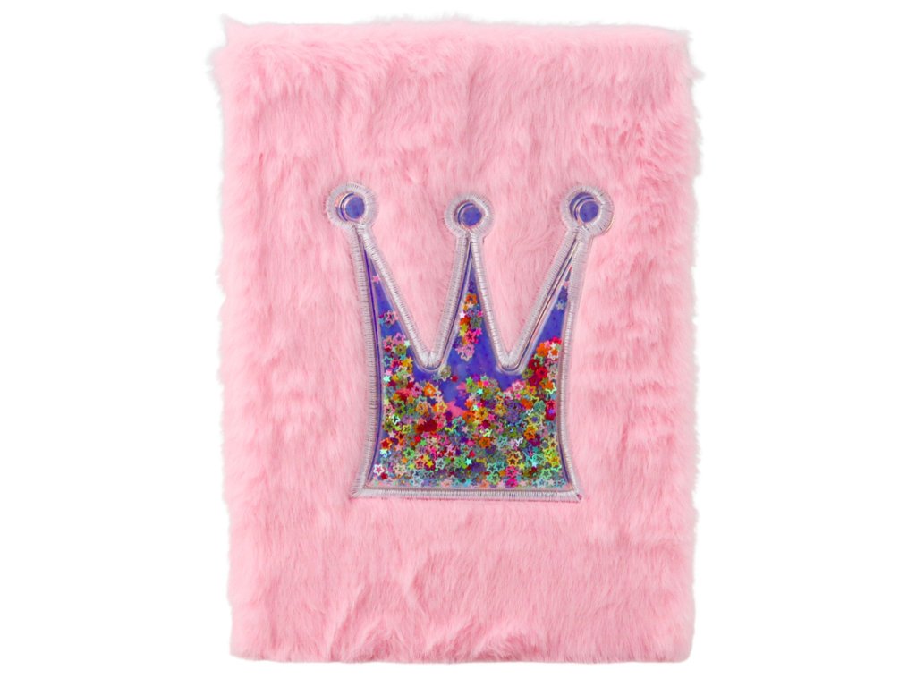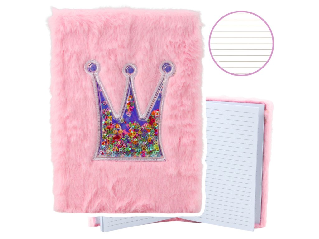 PLYŠOVÝ LINEKOVANÝ ZÁPISNÍK - KORUNA S KONFETTY, 80 STRÁNEK A5