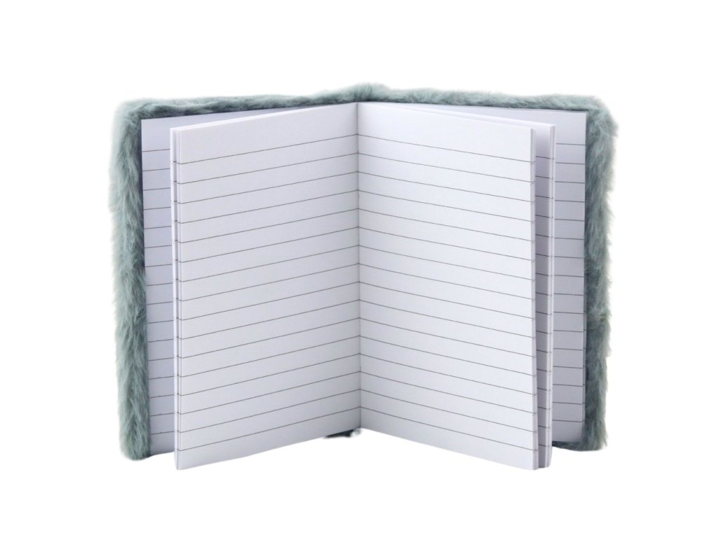 Tento plyšový zápisník s třpytivou aplikací ve tvaru hvězdy je perfektní kombinací funkčnosti a stylového designu. Měkký potah potažený měkkou, na dotek hmatatelnou kožešinou v tlumeném šedém odstínu upoutá pozornost a dodává celému kousku jedinečný charakter. Lesklá nášivka ve tvaru hvězdy se uprostřed třpytí různými barvami a vytváří výrazný kontrast s měkkým materiálem.