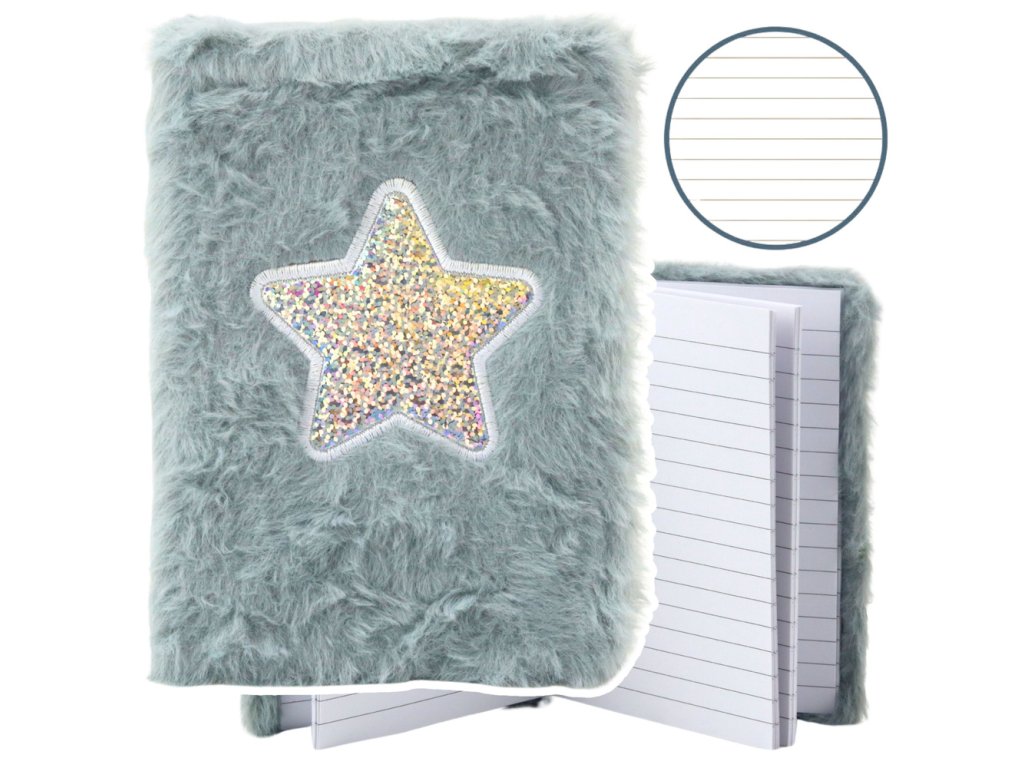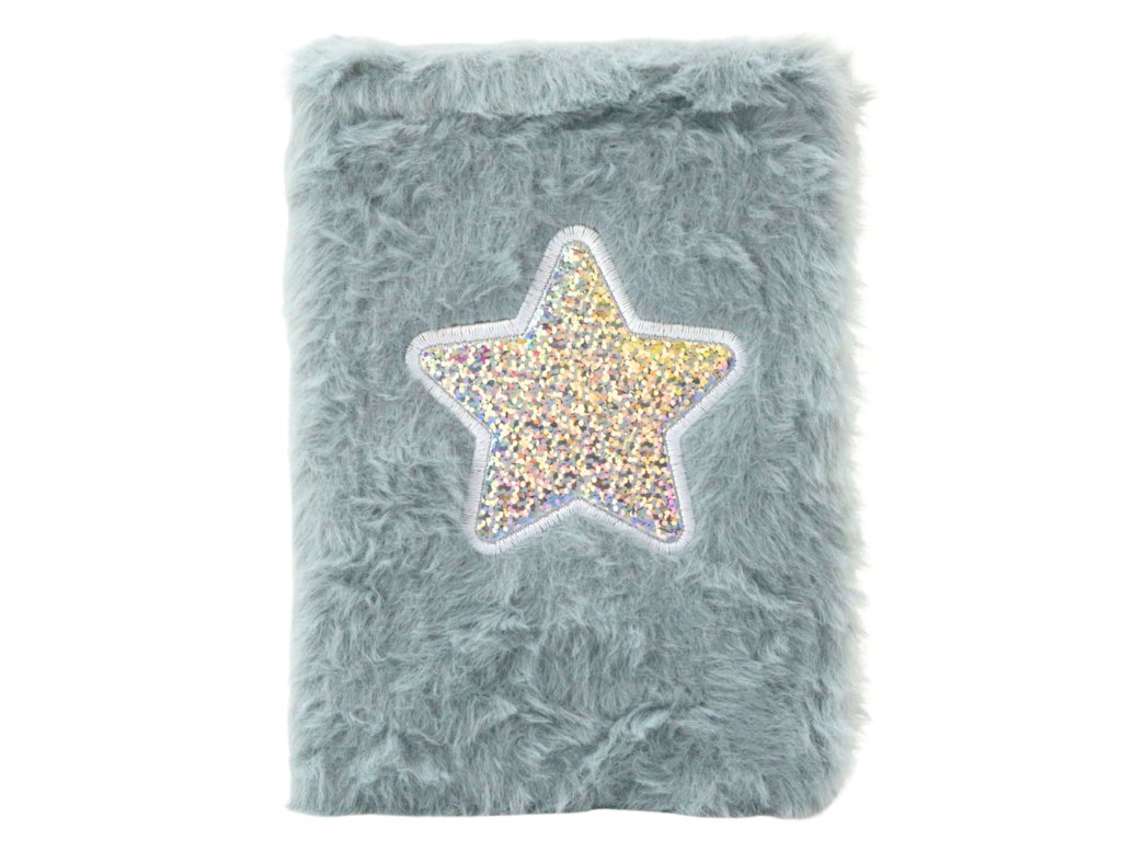 Plyšový lemovaný zápisník na 80 listů, třpytivá hvězda, velikost A6