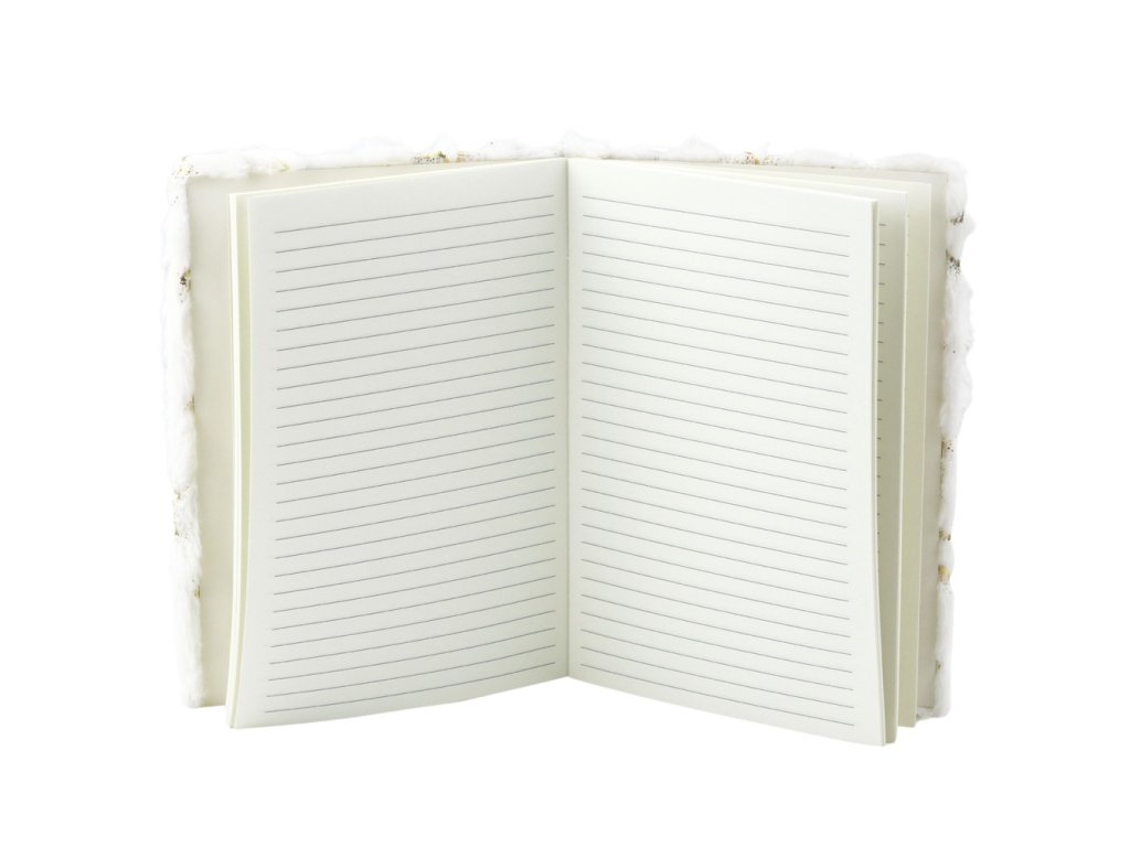 Tento plyšový linkovaný zápisník s bílým přebalem pokrytým zlatými hvězdami je jedinečnou směsí klasického stylu a třpytu. Jeho jemný, nadýchaný povrch potěší na první dotek a třpytivé třpytivé prvky dodávají osobitý charakter. Tento notebook úspěšně kombinuje každodenní funkčnost s elegantním, a přesto pohádkovým designem.