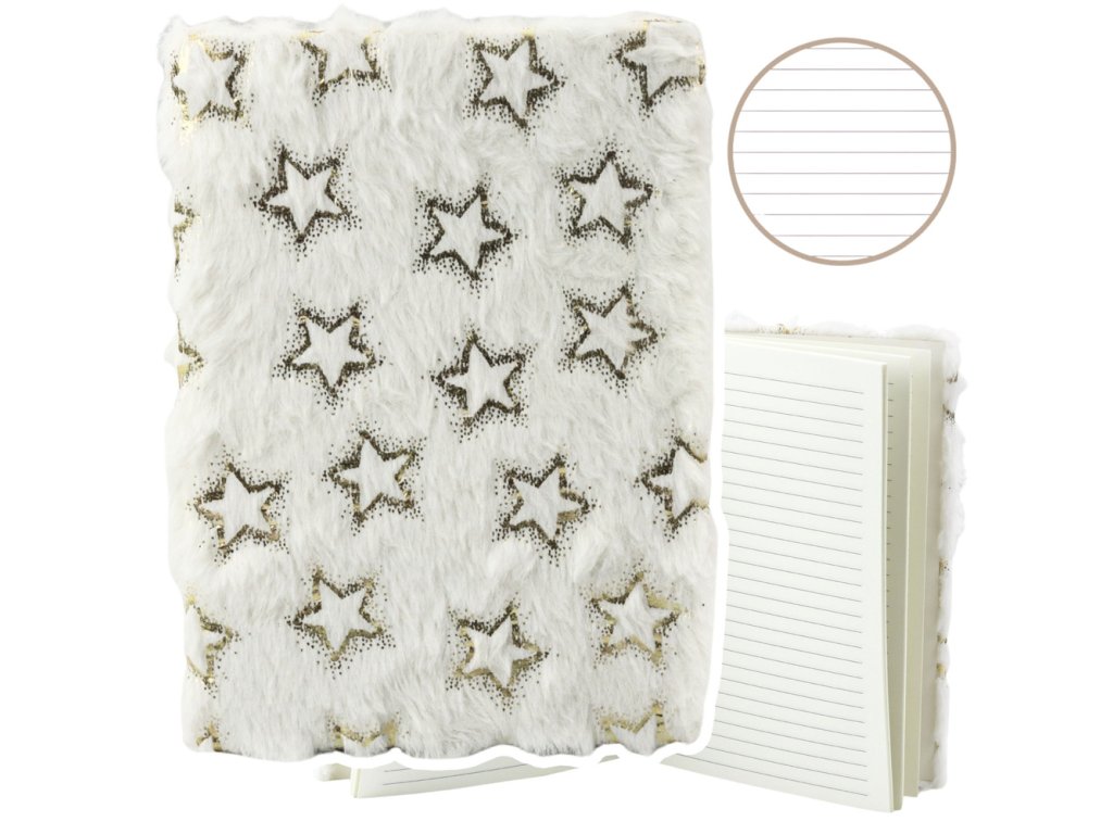 Plyšový sešit Linkovaný Zlaté hvězdy Bílé A5 80 listů