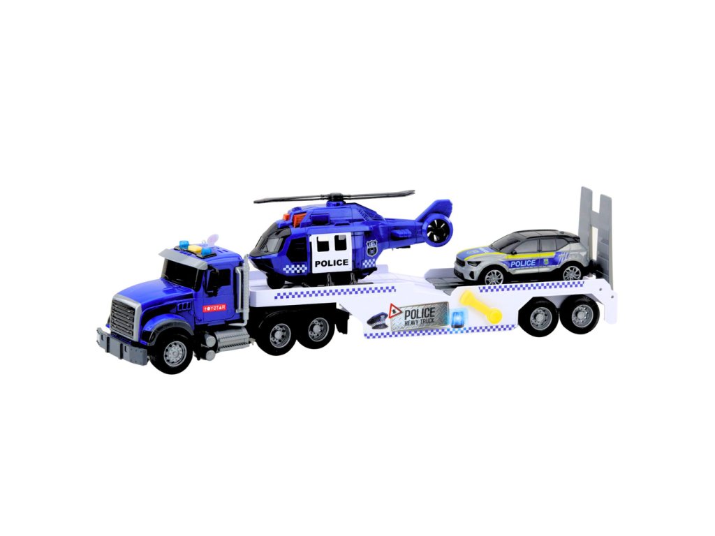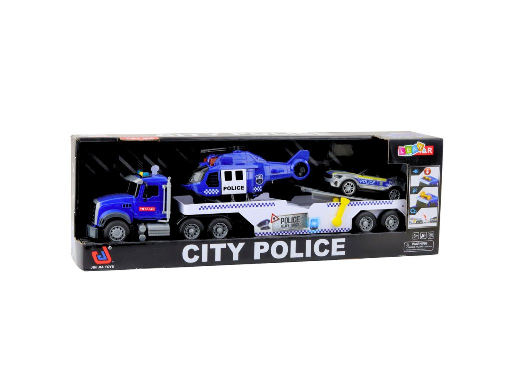 - Sada obsahuje nákladní auto, vrtulník a policejní auto