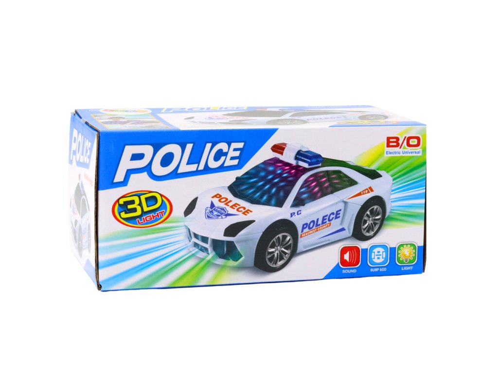 Auto má barevná světla umístěná v přední části vozidla a realistické zvuky, které podněcují fantazii. Charakteristické bílé a červené barvy s modrými detaily mu dodávají autentický vzhled uniformovaného služebního vozu.
