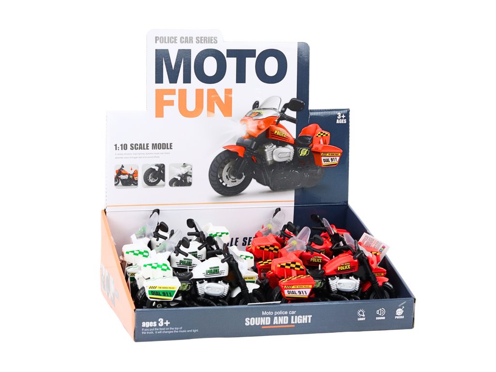 Policejní motorka v měřítku 1 : 10 je jedinečná hračka, která zaujme svou autenticitou a funkčností. Hračka byla navržena v bílé nebo červené barvě s označením charakteristickým pro policejní vozidla.