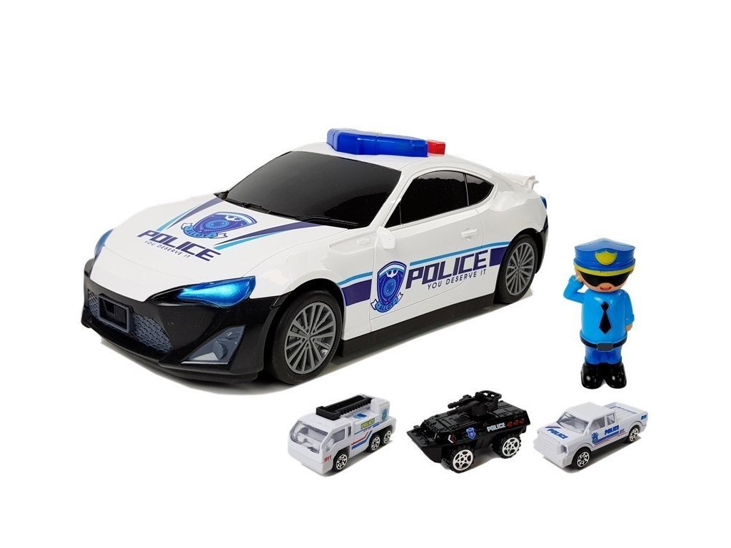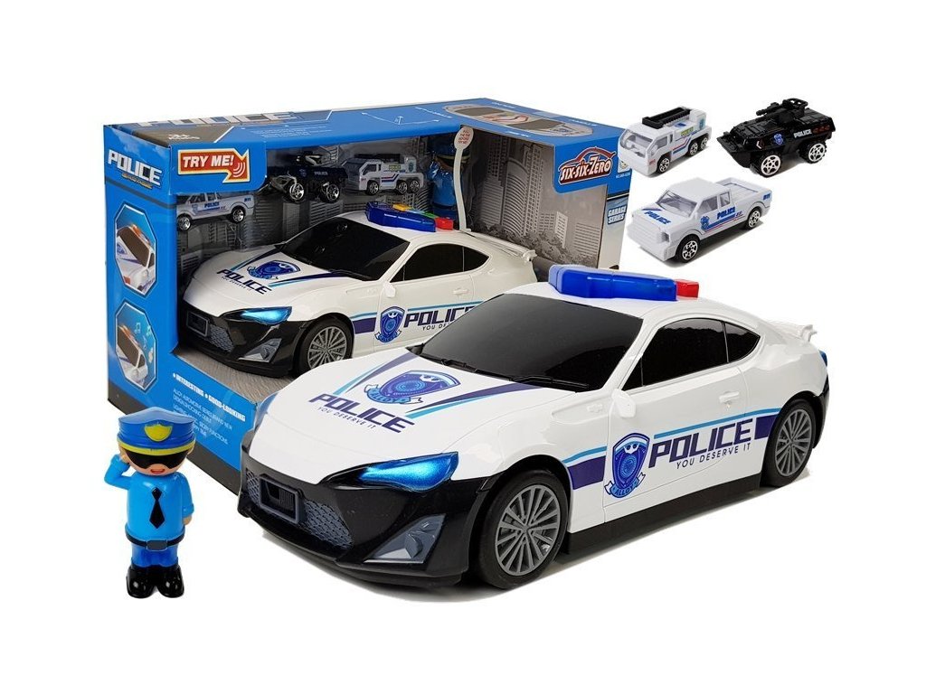 Policejní úložný box do auta Garáž 2v1 Policista Malá auta Zvuková světla