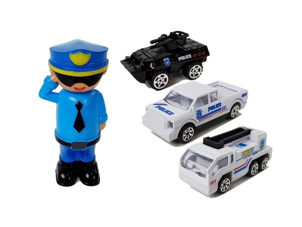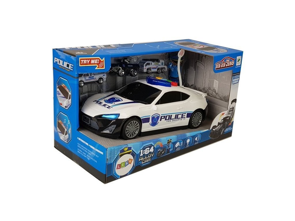 Polepy a aerodynamický tvar a tónovaná skla vozu dodávají vozu jiskru. Zbývající prvky sady jsou dalším překvapením: figurka policisty, 3 malá policejní vozidla. Malá policejní auta jsou vyrobena v měřítku 1:64 , takže se snadno vejdou i do velkého policejního auta. Jsou vyrobeny z kovových a plastových prvků, zcela bezpečné pro děti, bez ostrých hran. Dvě z nich jsou bílé a jedna černá.