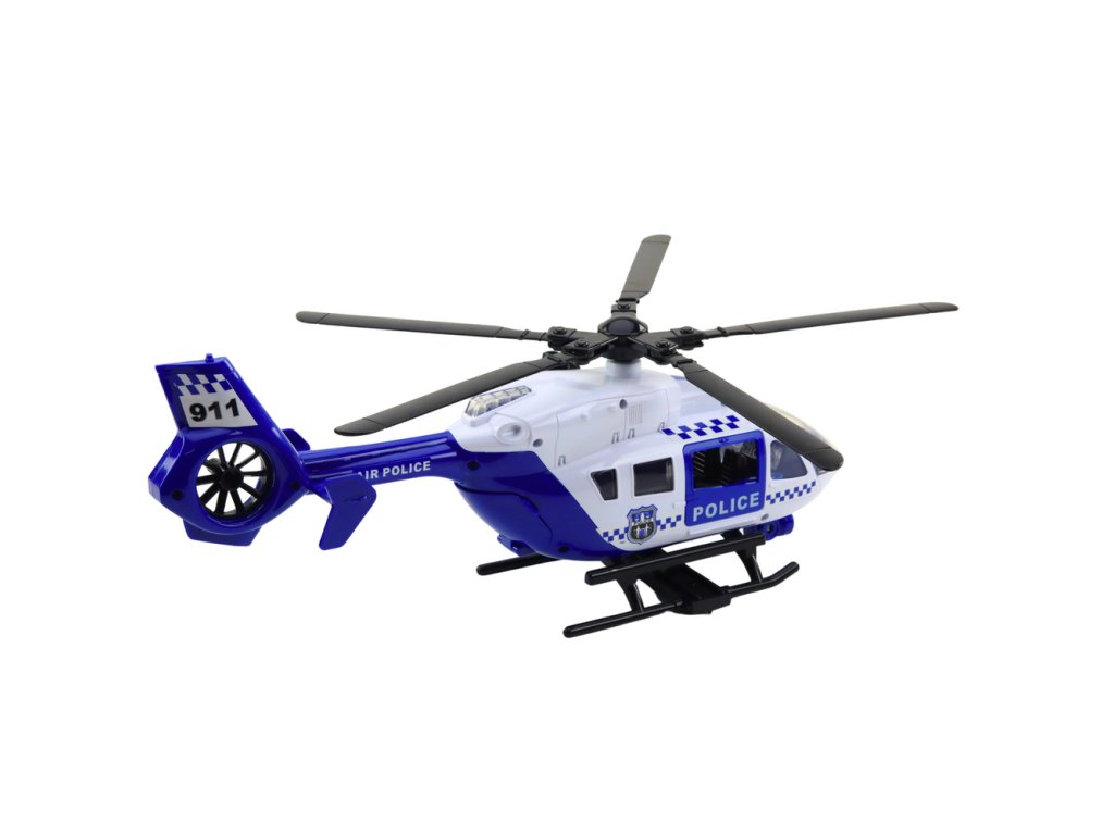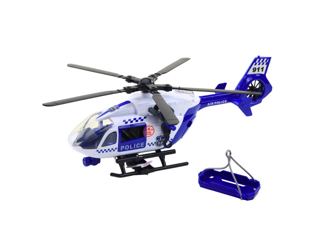 Hračka je vybavena pohyblivými vrtulemi, které lze uvést do pohybu, což navíc zvyšuje realističnost hry. Světelné a zvukové efekty způsobují, že vrtulník vypadá a zní jako skutečný policejní stroj, což hře dodává dynamický charakter. Díky háku s nosítky mohou děti simulovat záchranné, transportní a evakuační operace, což umožňuje vytvářet různé napínavé herní scénáře.