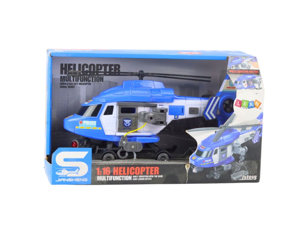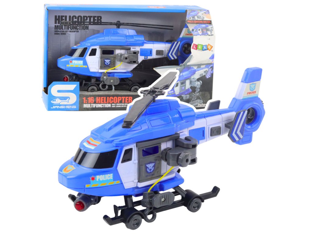Vrtulník má světelné a zvukové efekty aktivované tlačítky. Díky tomu je hra ještě realističtější a děti se mohou cítit jako skuteční policejní piloti. Model má také otočné vrtule pro větší autenticitu a kola pro lepší manévrovatelnost.