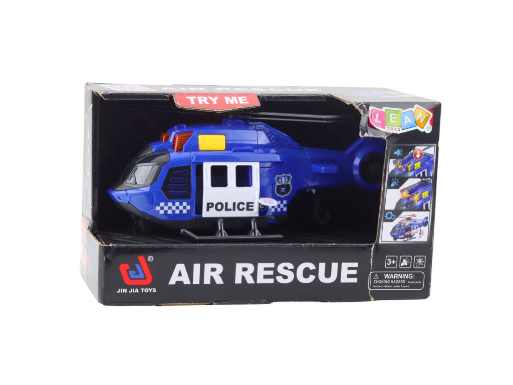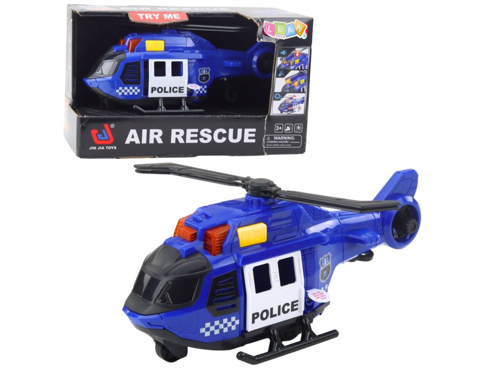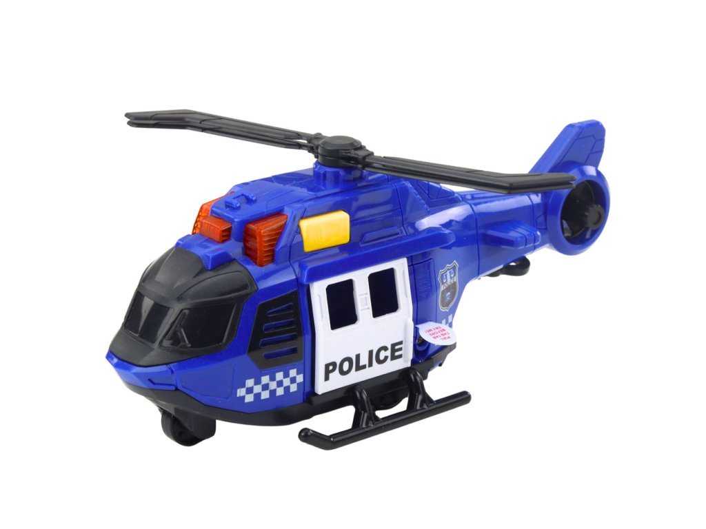 Policejní vrtulník s jeřábem, světla, zvuky, modrý