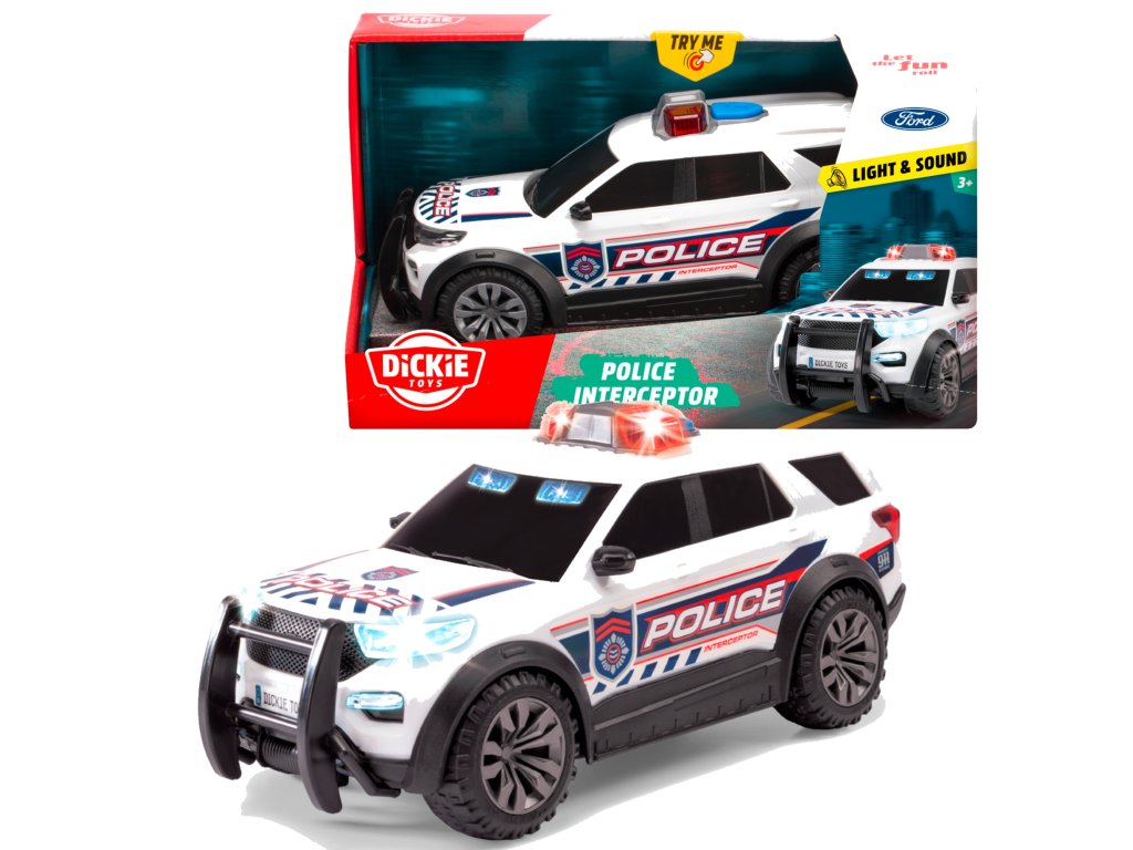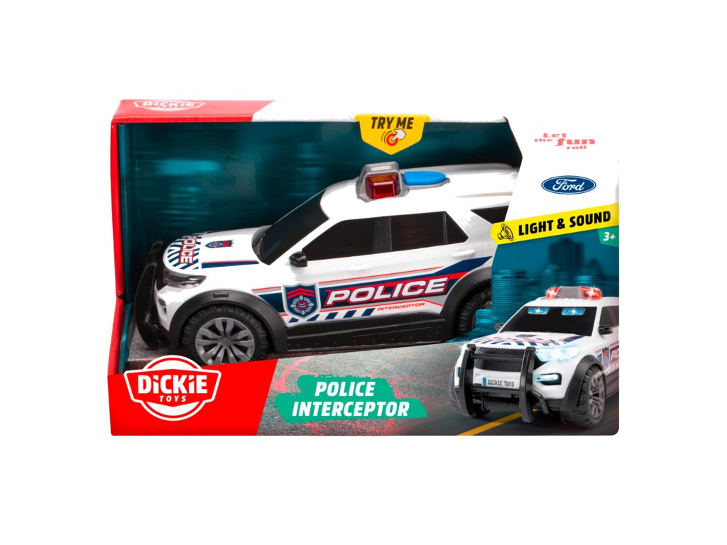 Policejní auto Ford Interceptor od Dickie Toys je policejní vozidlo, které upoutá pozornost každého mladého fanouška akce. Vůz je vyveden v bílé barvě s poutavými detaily.