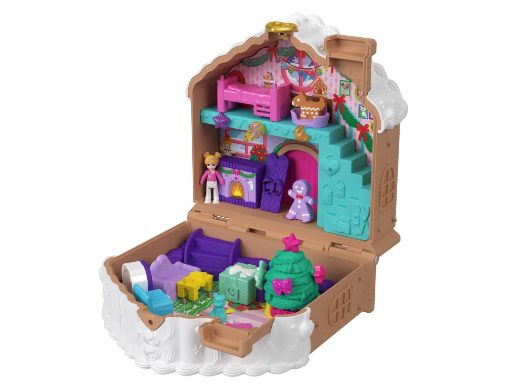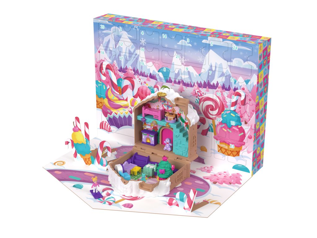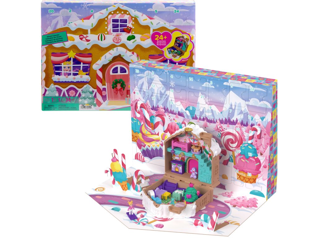Kapesní adventní kalendář z perníkové chaloupky Polly je jedinečná nabídka, která děti dostane do sváteční nálady a přináší nová překvapení každý den až do Štědrého dne. Sada má tvar půvabné chaloupky inspirované perníkem, která po otevření odkryje vánočně nabitý interiér. Děti uvnitř najdou panenku Polly a přes 24 doplňků a dekorací, které mohou objevovat každý prosincový den.
