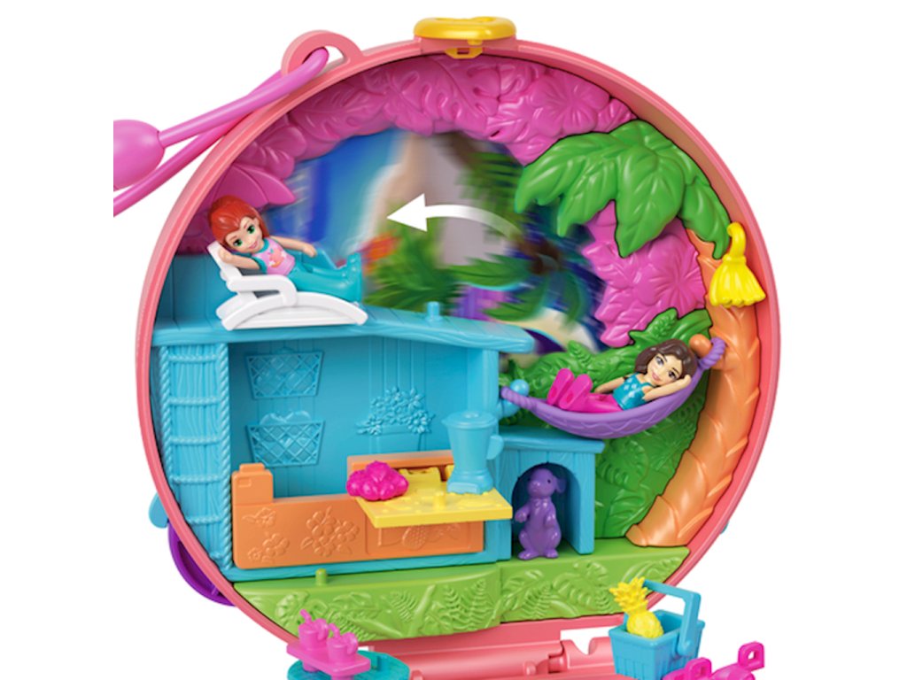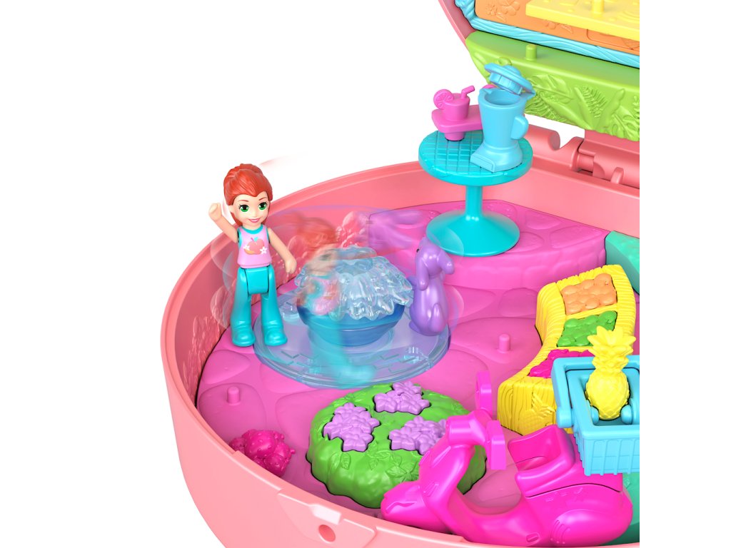 Kompaktní sada psích koloběžek Polly Pocket HWN98Kompaktní psí koloběžka Polly Pocket vypadá jako rozkošné vozítko s psí tématikou s pohyblivými koly a posuvným prvkem. Po otevření najdete okouzlující město se dvěma mikropanenkami a 12 doplňky, jako pes. Panenky milují jízdu po městě na svých koloběžkách. Dejte si čerstvý džus ve snack baru nebo si hrajte s přáteli v parku. Na konci dne plného zábavy můžete obdivovat výhled z pohodlí houpací síť – jaký ráj. Až skončíte s hraním, složte sadu a vezměte si to, kam chcete.