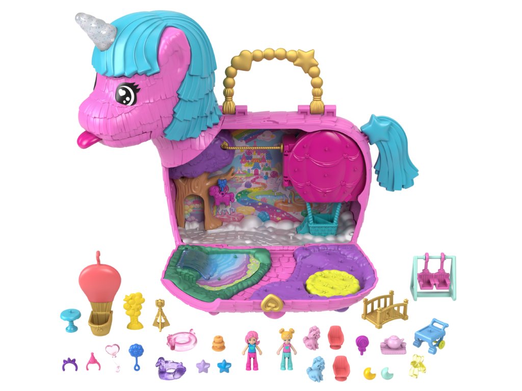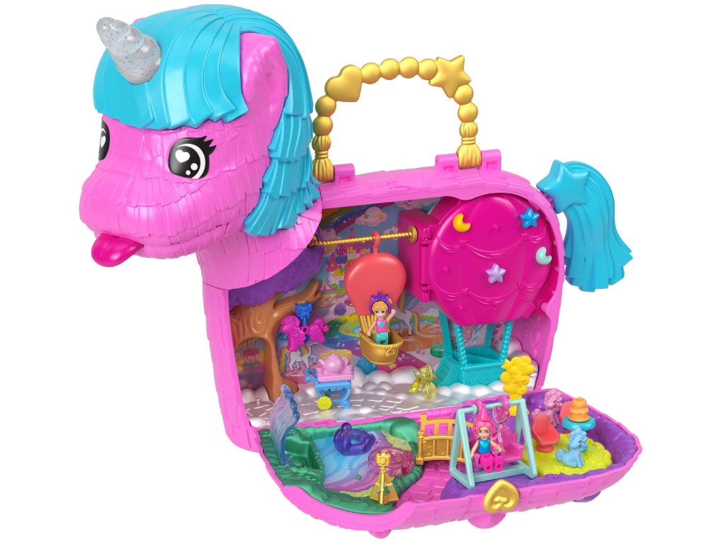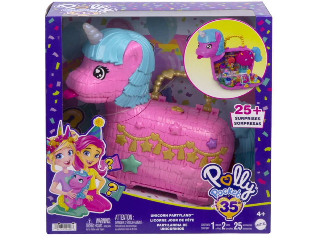 Oslavte Polly Pocket 35. narozeniny v kouzelném stylu! Tato jedinečná sada "Unicorn Surprise" zavede děti do pohádkového světa zábavy plného barev, kouzel a překvapení. Uvnitř rozkošné piñata ve tvaru jednorožce jsou 2 mikropanenky a více než 25 doplňků , které poskytnou hodiny kreativní hry.