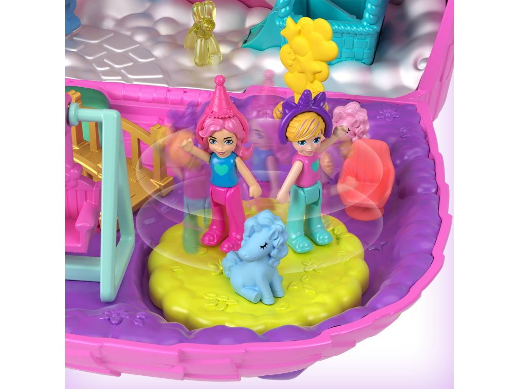 Polly Pocket Unicorn Birthday Partyland Kompaktní sada, mini panenky a příslušenství