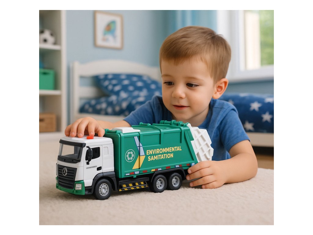 Tento realisticky zpracovaný popelářský vůz potěší každého mladého fanouška automobilové a komunální techniky. Model replikuje vzhled skutečných sanitačních vozidel a umožňuje dětem ponořit se do role pracovníka komunálních služeb. Robustní kovová kabina vozu zajišťuje odolnost, zatímco otevírací dveře umožňují nahlédnout do interiéru vozidla, což hernímu zážitku dodává autenticitu a realismus.