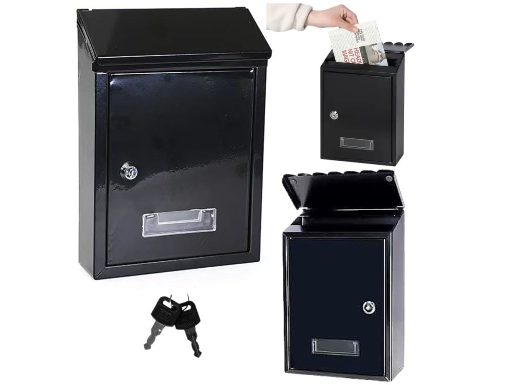 Tato kompaktní černá poštovní schránka je praktickým řešením pro ukládání korespondence. Vyrobeno z odolných materiálů, je odolné vůči povětrnostním vlivům a poskytuje ochranu před deštěm a větrem.