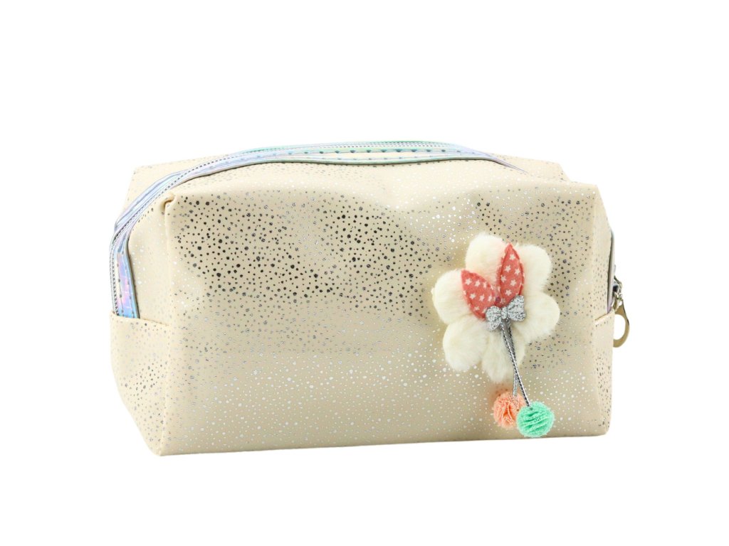 Pouzdro Na Tužky Kosmetická Taštička Mašle Třpytivé Částečky Béžová