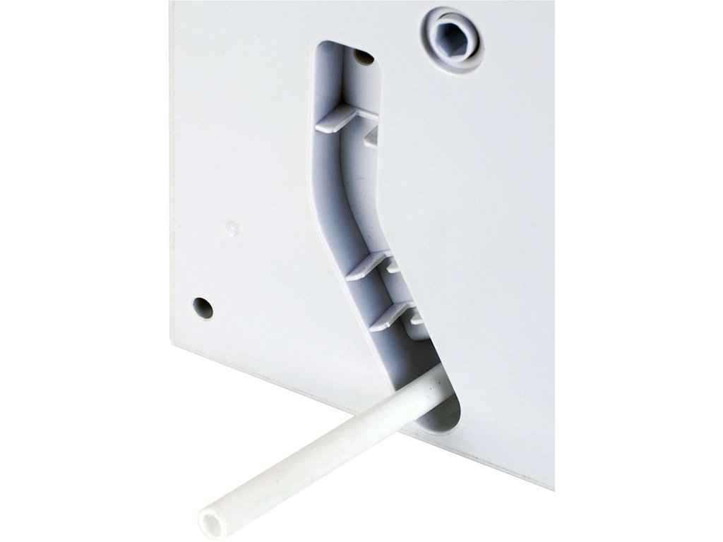 Kromě toho může zařízení stejně jako skutečná pračka pracovat pomocí vody. Voda se nalévá přes zásuvku na prací prostředek a vylévá se trubičkou na zadní straně pračky.