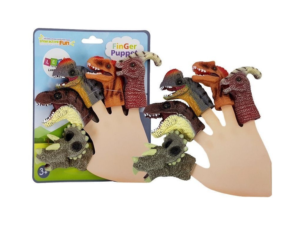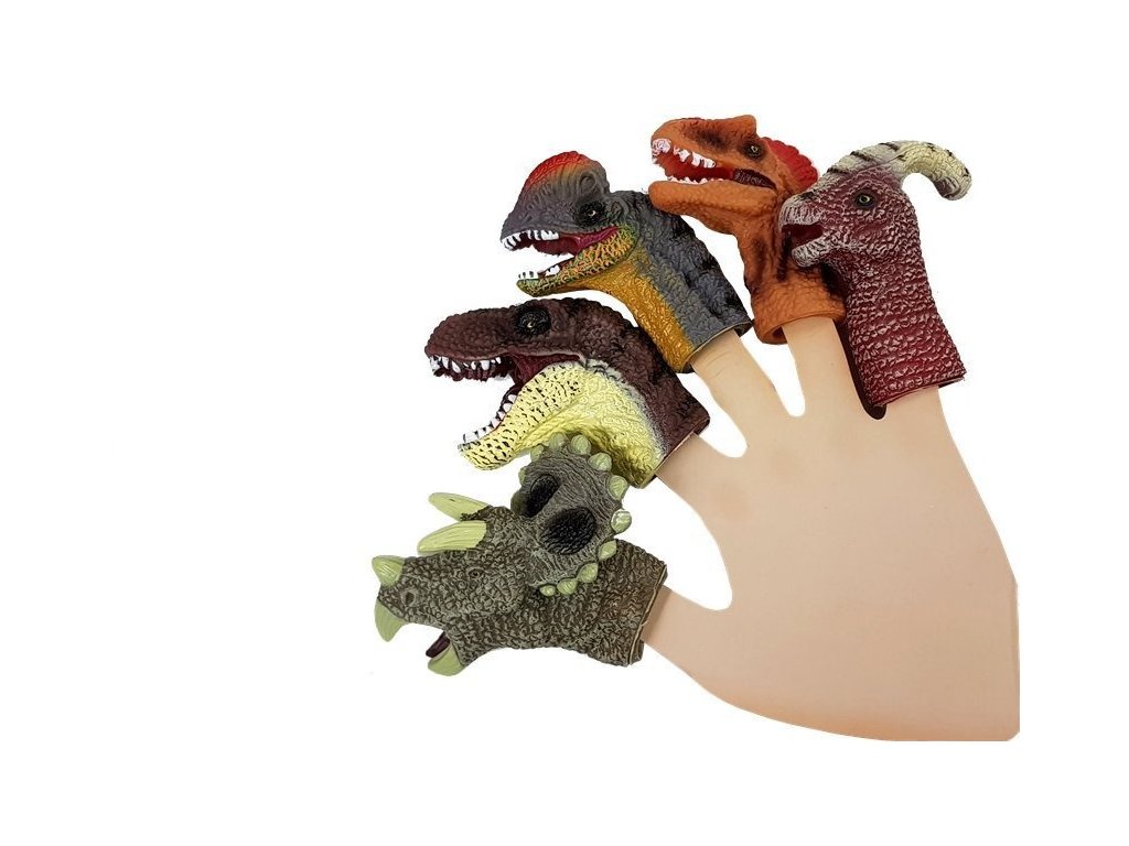 Prezentovaná sada obsahuje pět gumových vycpávek prstů ve tvaru dinosaurů, je to ideální návrh pro vytvoření vlastního divadla.
