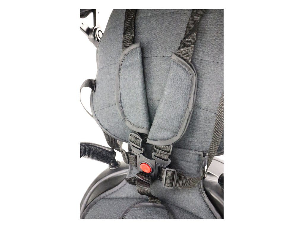 Prezentované dětské kolo lze přetvořit mnoha způsoby, takže roste s dítětem - bez nutnosti výměny vybavení za nové. S přibývajícím věkem dítěte lze vodítko odepnout a dítě tak může jezdit samostatně. Kvalitní nafukovací kola zajišťují jízdní komfort a pětibodové, zapínané pásy a zámky zadních kol zvyšují bezpečnost dítěte při používání kola.