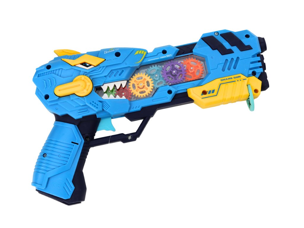 Když dítě stiskne spoušť, zbraň ožije zvuky výstřelů a osvětlená ozubená kola se roztočí, což akci dodá dynamiku a realističnost. Nejvíce fascinující však je, že po výstřelu se objeví projekce dinosaura, která dělá scenérii realističtější a kouzelnější.