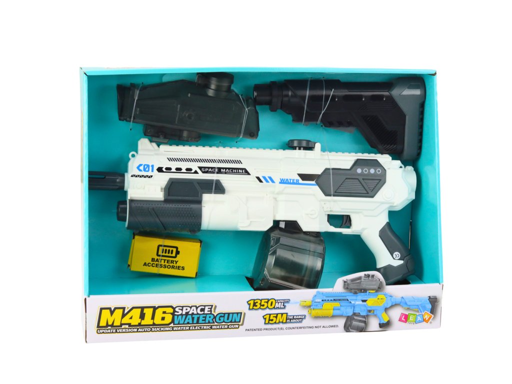 Bateriová vodní pistole M416 v bílé a šedé barvě je moderní a dynamická hračka, která dětem poskytne spoustu radosti a vzrušujících chvil během letních dobrodružství. Díky systému automatického ovládání hračka nevyžaduje ruční pumpování - stačí stisknout spoušť a zahájit vodní bitvu!