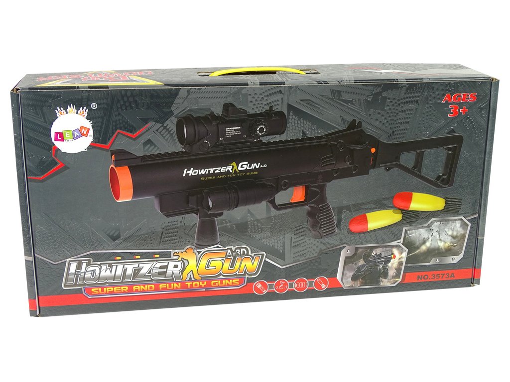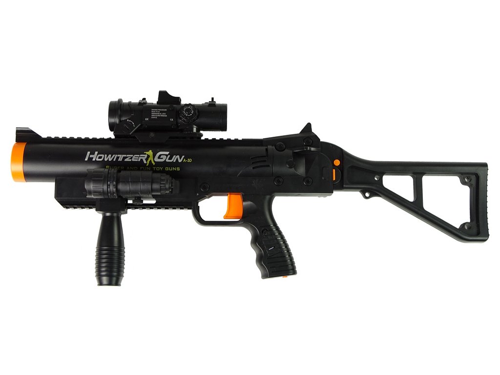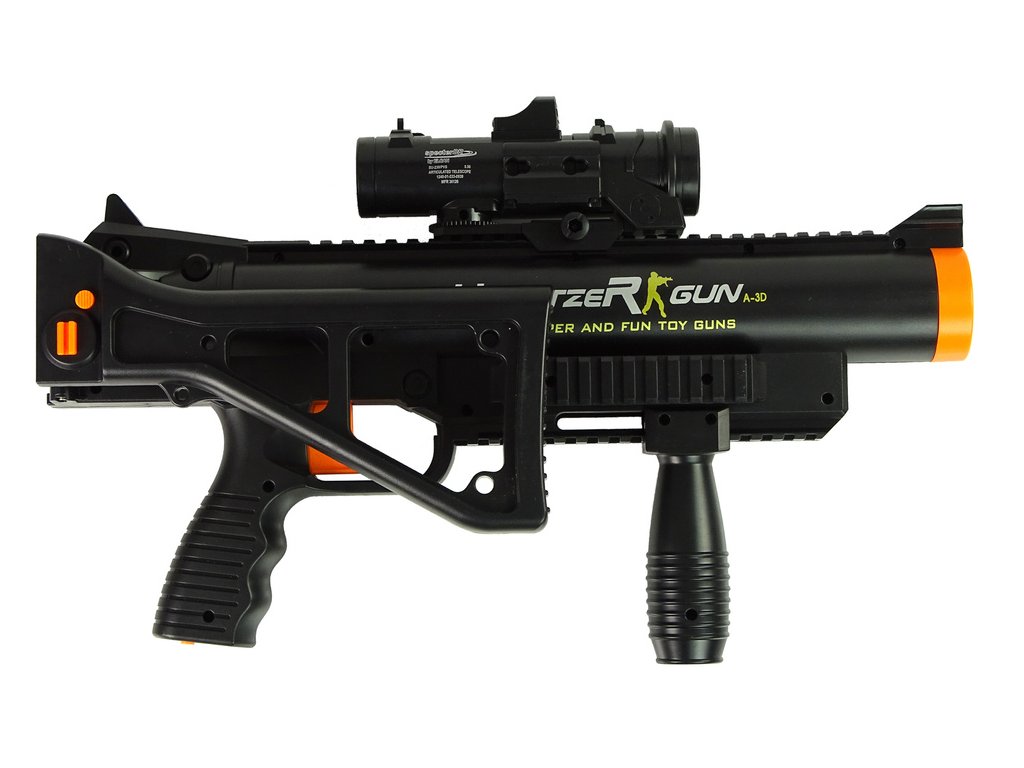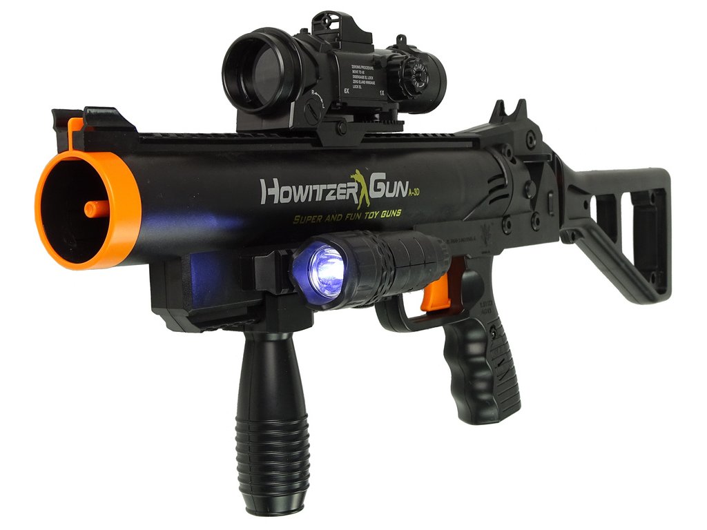 Speciálně namontovaná pružina způsobí vymrštění spolu s realistickým zvukem exploze, přebíjení a série výstřelů. Střely jsou zcela bezpečné, obklopené měkkou pěnou. Velký efekt dává rozsah střely!