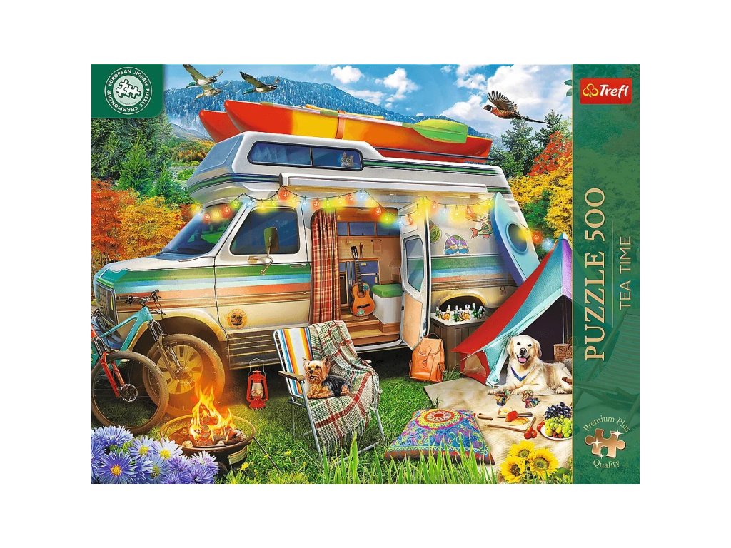 Tato sada puzzle se skládá z 500 dílků a umožňuje vám sestavit neuvěřitelně barevný obrázek s karavanem a zvířátky.