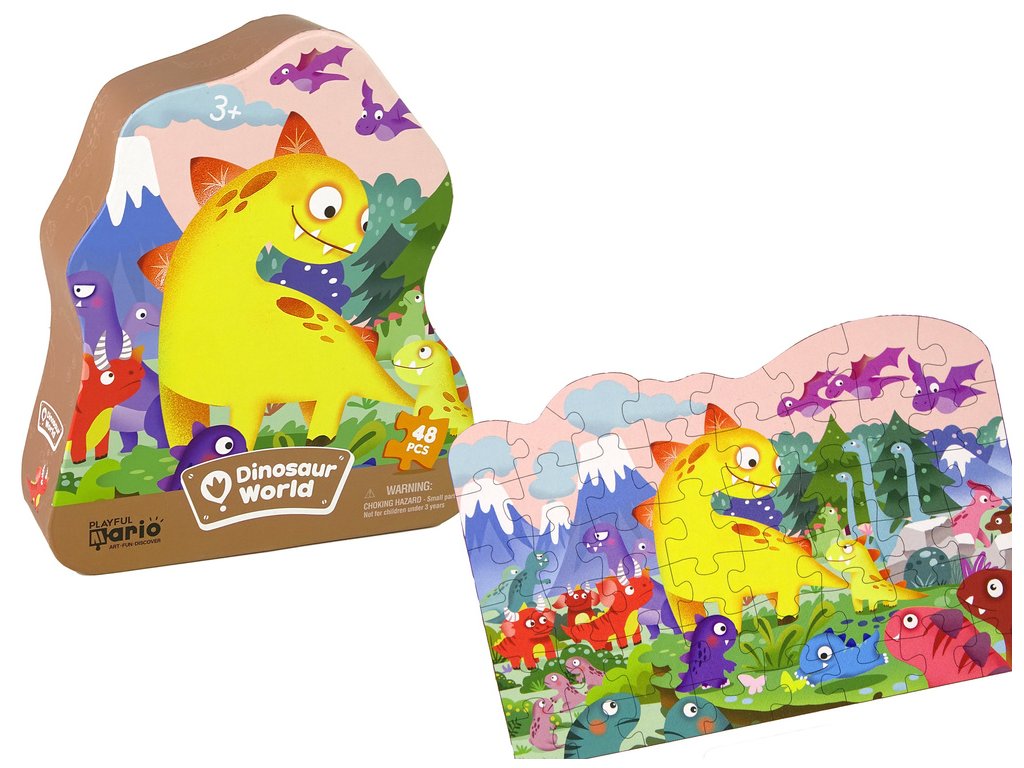 Jedná se o sadu 48dílných skládaček určených pro děti od 3 let. Když poskládáte tuto fascinující skládačku, získáte obrázek o rozměrech působivých 50 cm x 34 cm, zobrazující údolí přátelských dinosaurů.