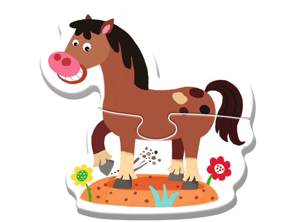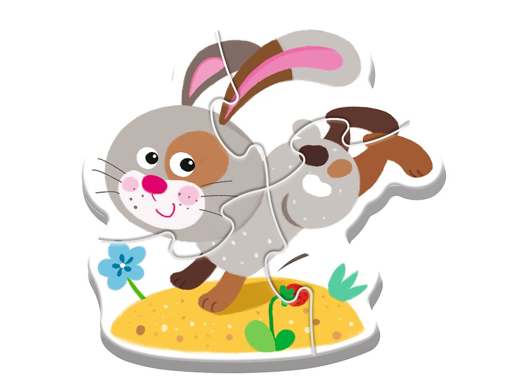 - Sada se skládá ze 4 samostatných puzzle zobrazujících zvířata (celkem 14 prvků)