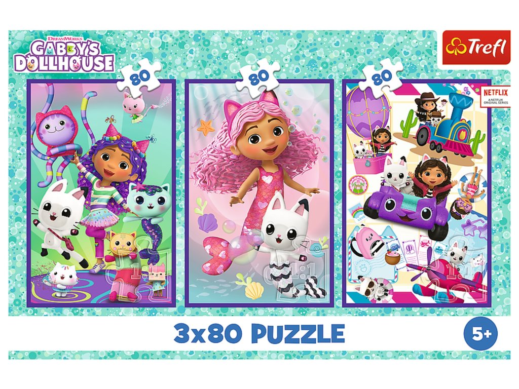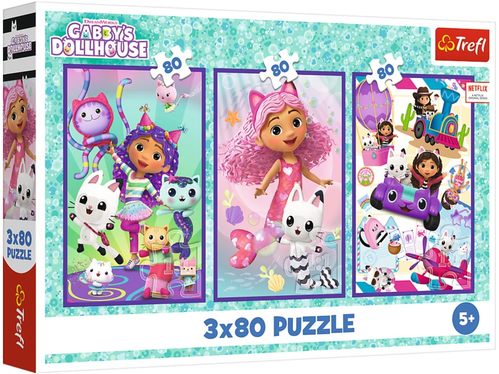 Hádanka Trefl 3 x 80 Gabi's Cat House Barevné dny Gabi's Colorful Days Gabbinin domeček pro panenky