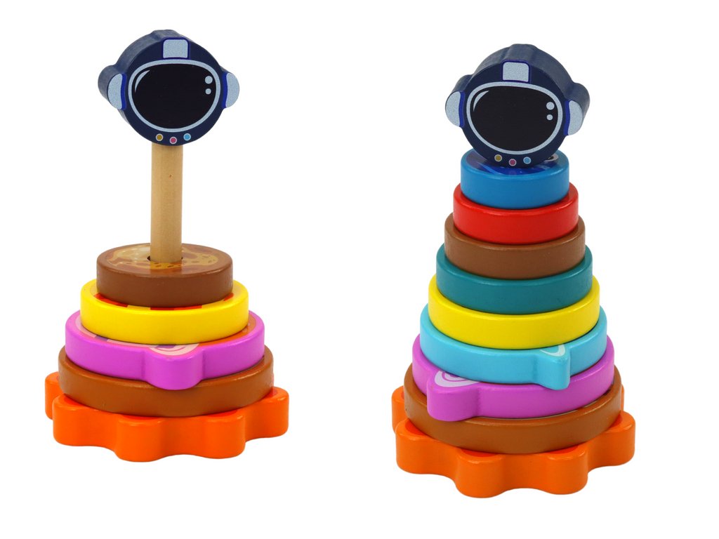 Tato třídička vesmírné pyramidy je mimořádným vzdělávacím dobrodružstvím pro děti, které je povzbuzuje k objevování vesmíru a rozvoji schopností logického myšlení. Sada se skládá z dřevěné základny ve tvaru sluneční soustavy, 8 planet a vesmírné helmy.