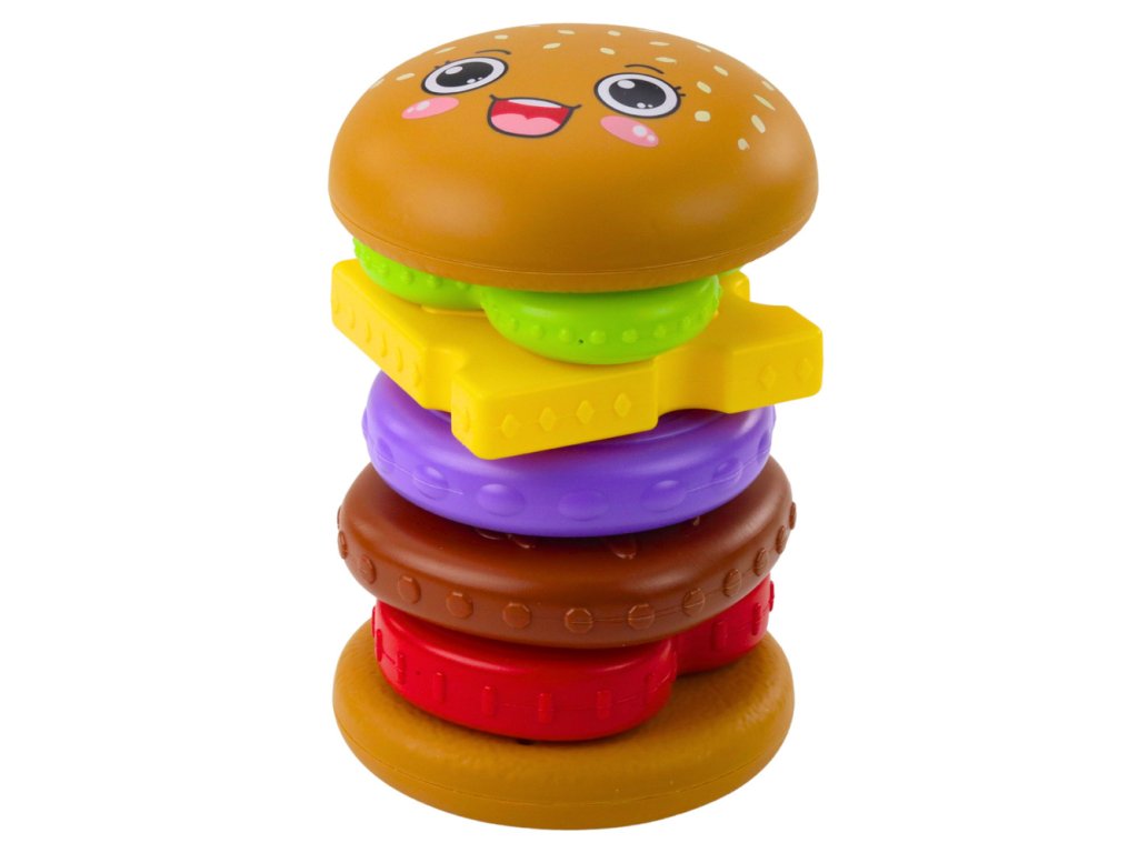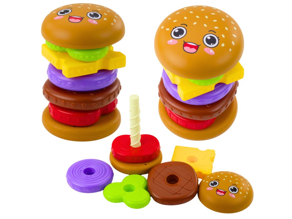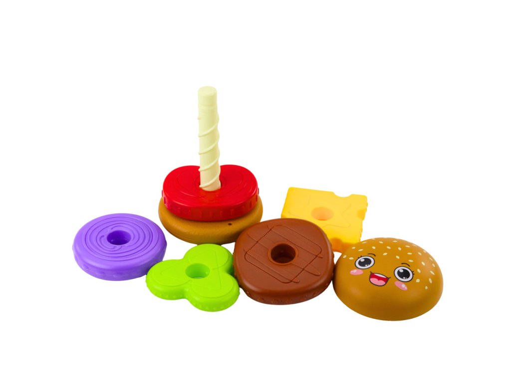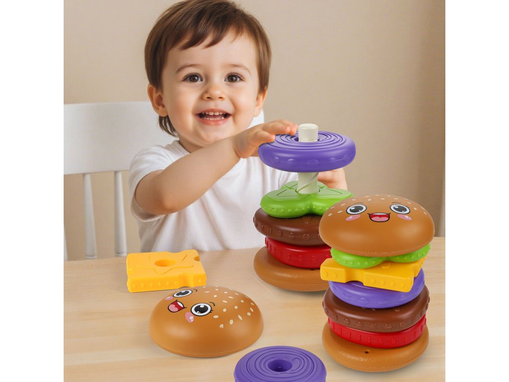 Hamburgerové puzzle je barevná a kreativní hračka určená pro děti, které si rády hrají s dětmi, hrají si na postavy a tvoří si vlastní výtvory. Model se skládá z vícedílné sady napodobující ingredience hamburgeru, což batolatům umožňuje samostatně skládat vrstvy a stavět si vlastní jedinečné sady. Zářivé barvy, měkké tvary a atraktivní design povzbuzují děti ke hraní a rozvíjení jejich dovedností.
