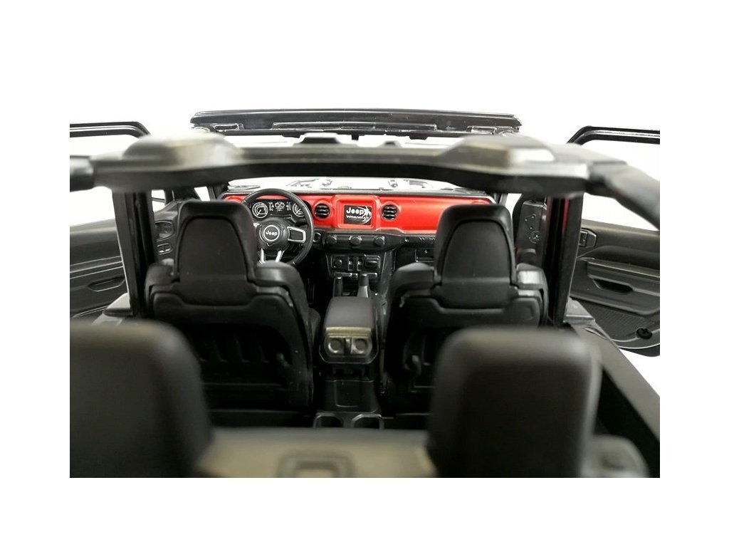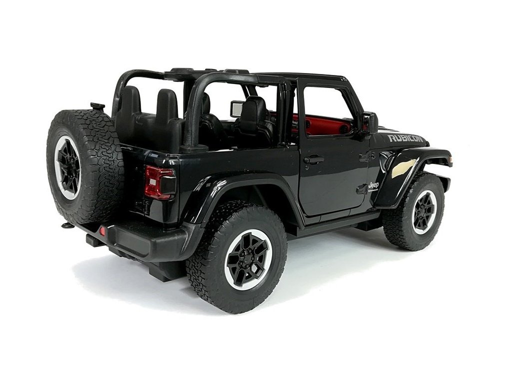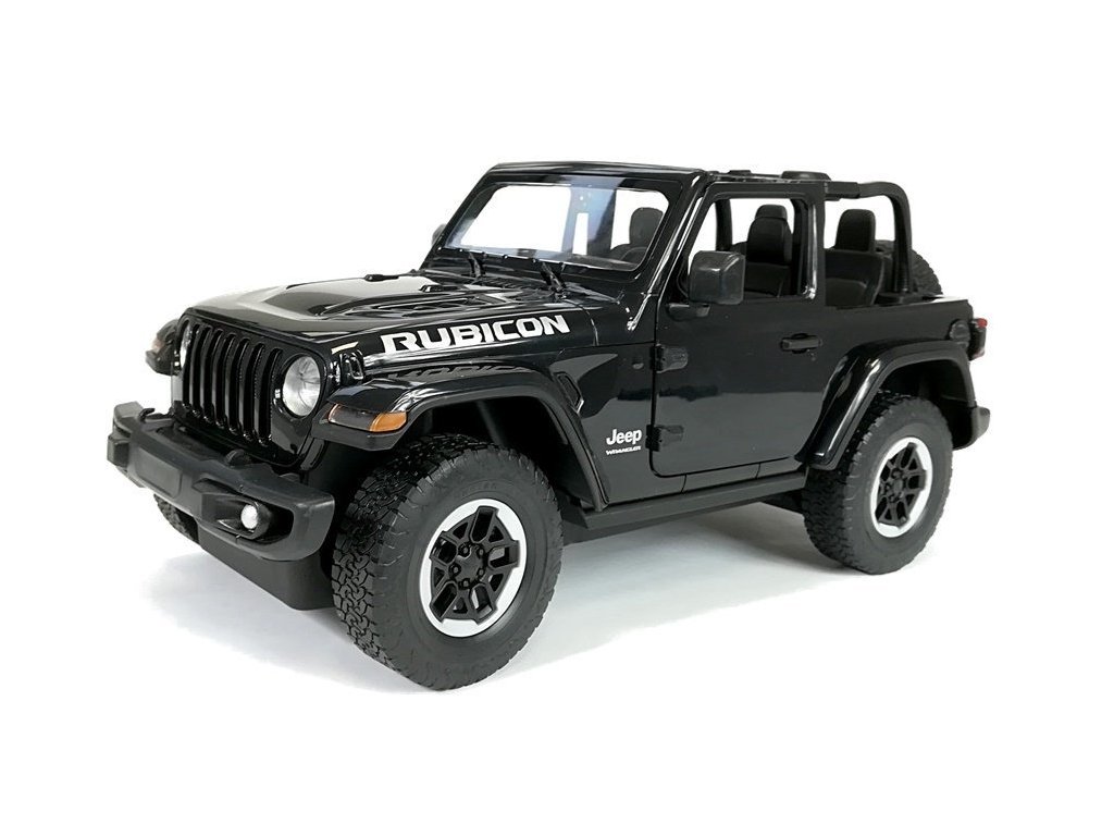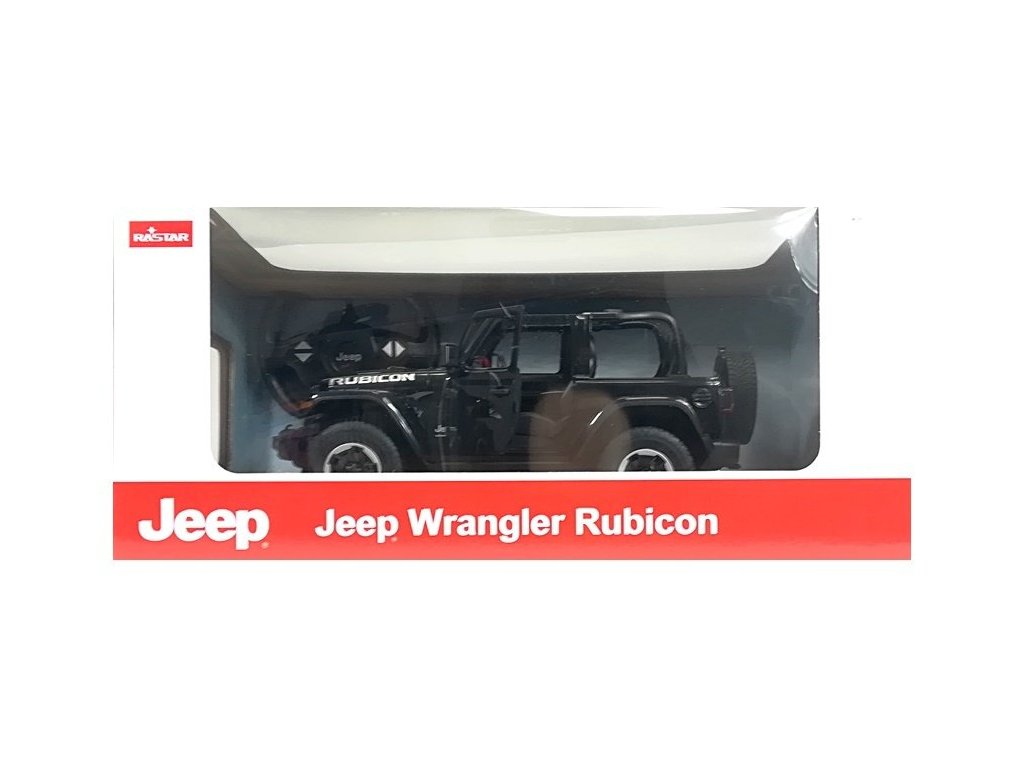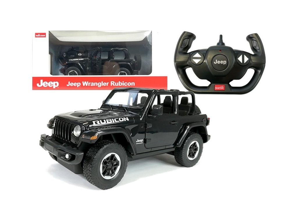 Dálkově ovládaný vůz Jeep Wrangler Rubicon v černé barvě je autentickou replikou v měřítku 1:14. Auto jede vpřed, vzad, zatáčí a brzdí pomocí dálkového ovladače. Díky svému off-roadovému charakteru může být použit jak uvnitř, tak venku. Světla ve vozidle se rozsvítí, když je v chodu a když jede. Dveře vozidla se otevírají ručně, interiér a podvozek vozidla jsou navrženy velmi precizně s péčí o shodu s originálním vozidlem. Dálkově ovládaný Jeep je řízen rádiovým dálkovým ovladačem a dosahuje rychlosti 7 kilometrů za hodinu. Dálkový ovladač má dosah zhruba tucet metrů a na rozdíl od infračervených ovladačů lze bez problémů používat i venku na plném slunci.