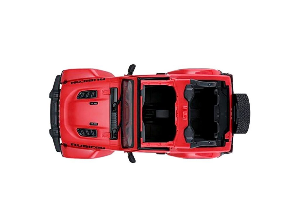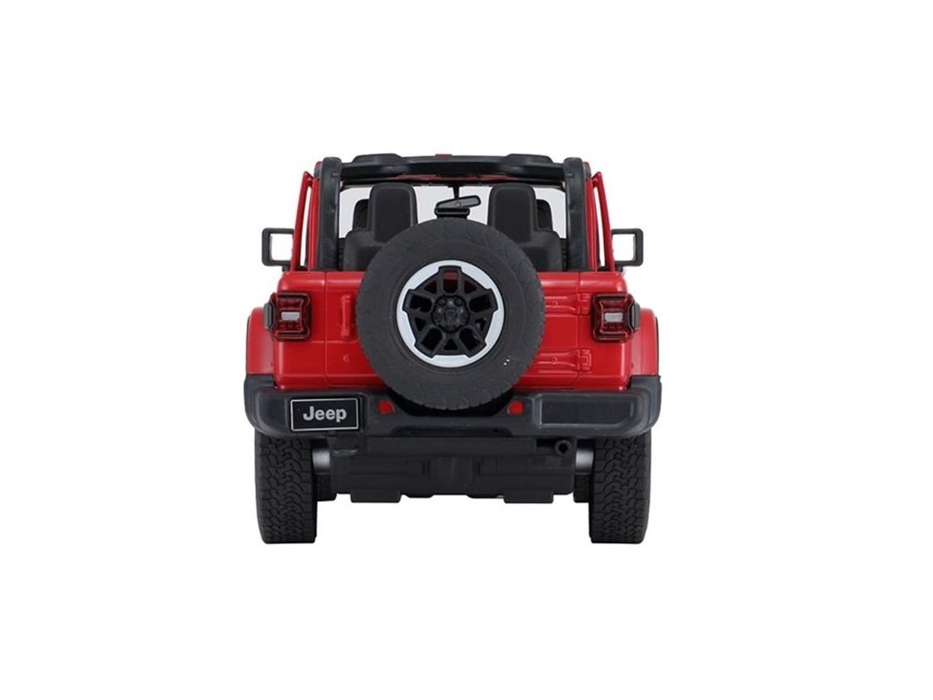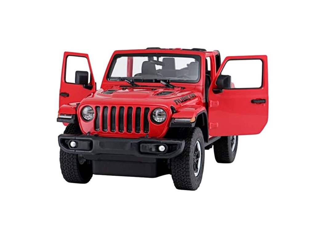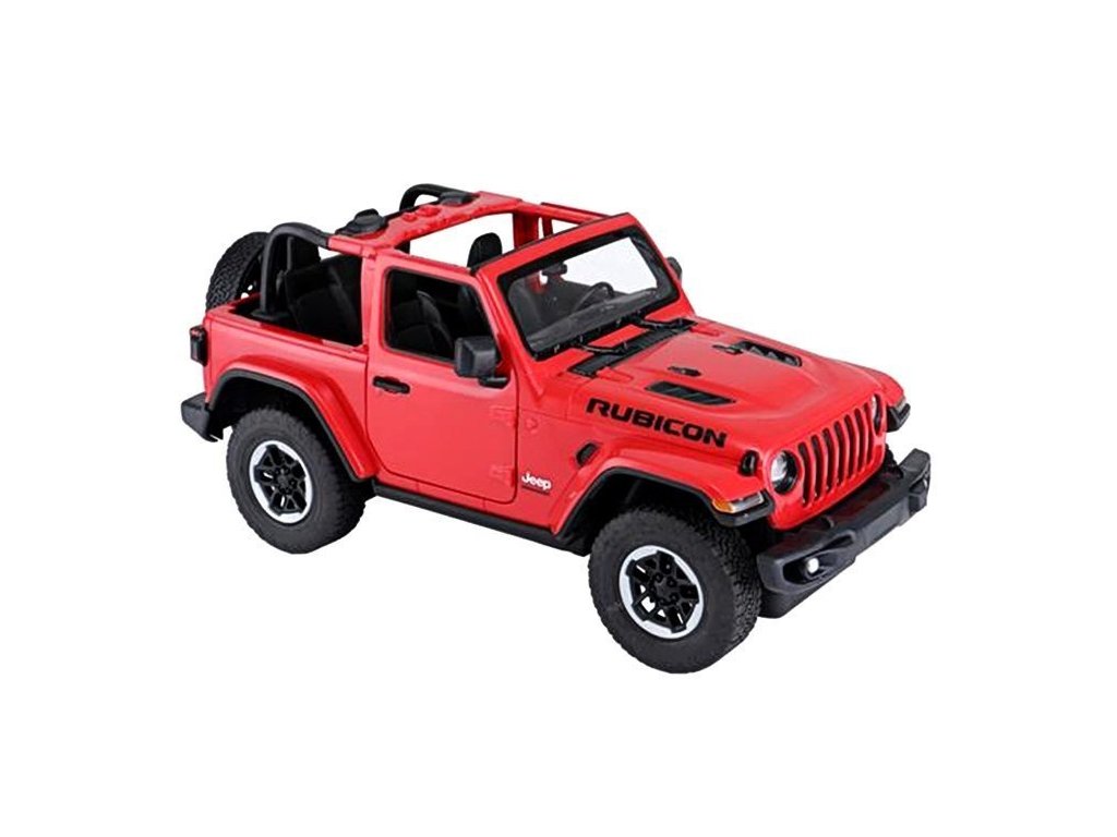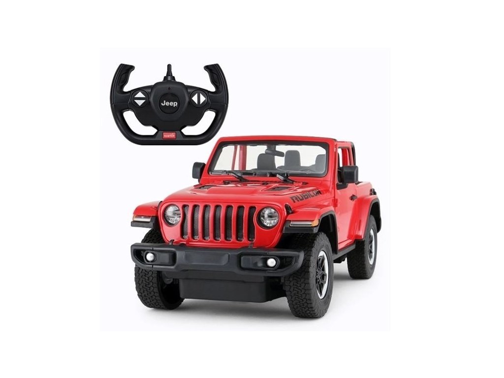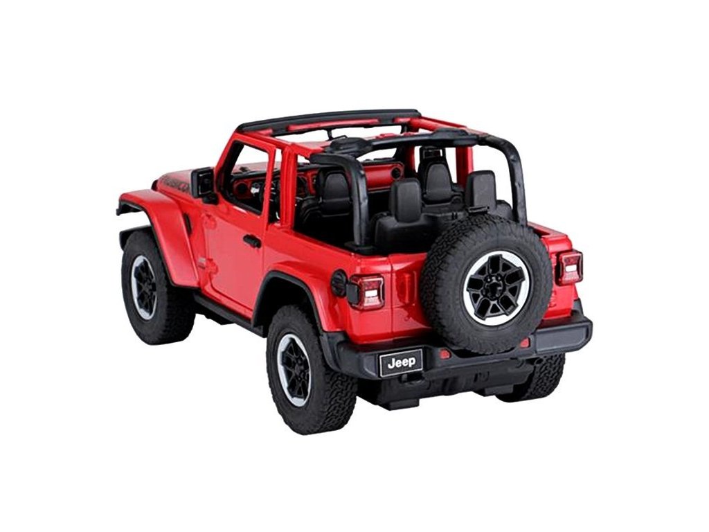 Dálkově ovládaný vůz Jeep Wrangler Rubicon v červené barvě je autentickou replikou v měřítku 1:14. Auto používá dálkové ovládání k pohybu vpřed, vzad, zatáčení a brzdění. Díky svému off-roadovému charakteru může být použit jak uvnitř, tak venku. Světla ve vozidle se rozsvítí, když je v chodu a když jede. Dveře vozidla se otevírají ručně, interiér a podvozek vozidla jsou navrženy velmi precizně s péčí o shodu s originálním vozidlem. Dálkově ovládaný Jeep je řízen rádiovým dálkovým ovladačem a dosahuje rychlosti 7 kilometrů za hodinu. Dálkový ovladač má dosah zhruba tucet metrů a na rozdíl od infračervených ovladačů lze bez problémů používat i venku na plném slunci.