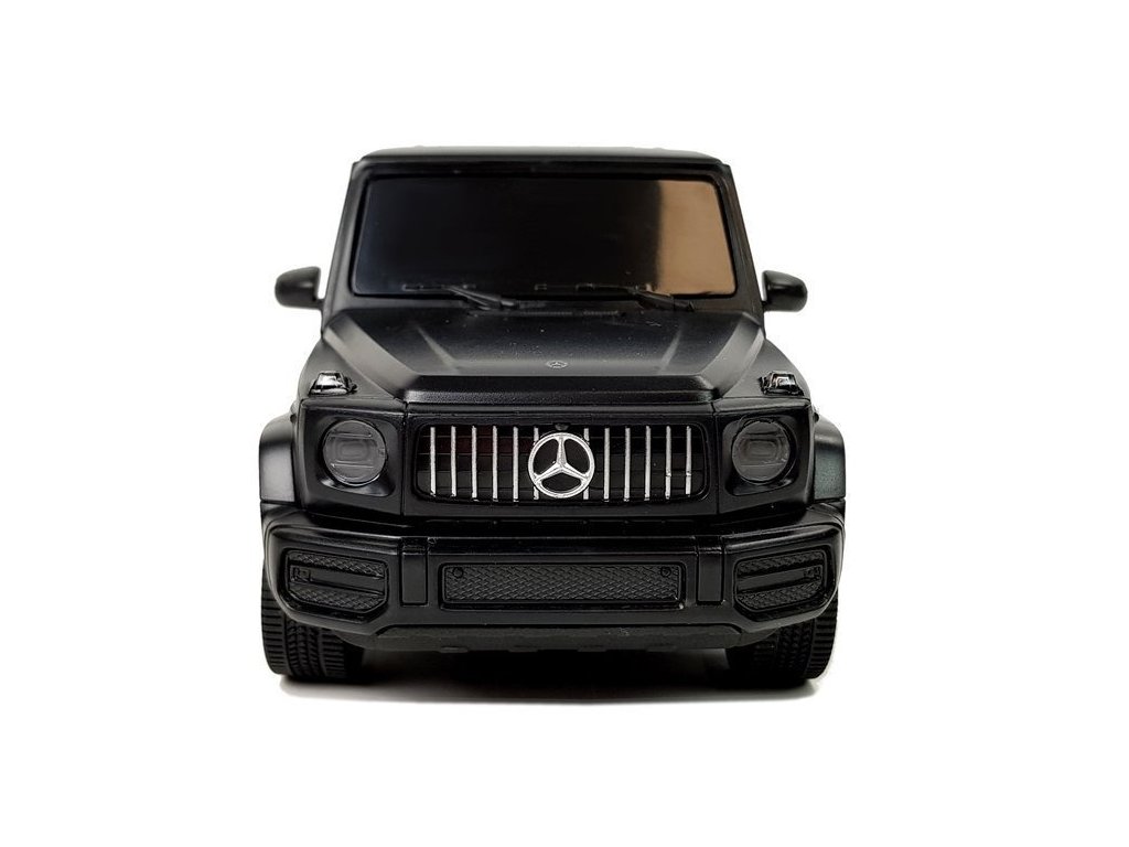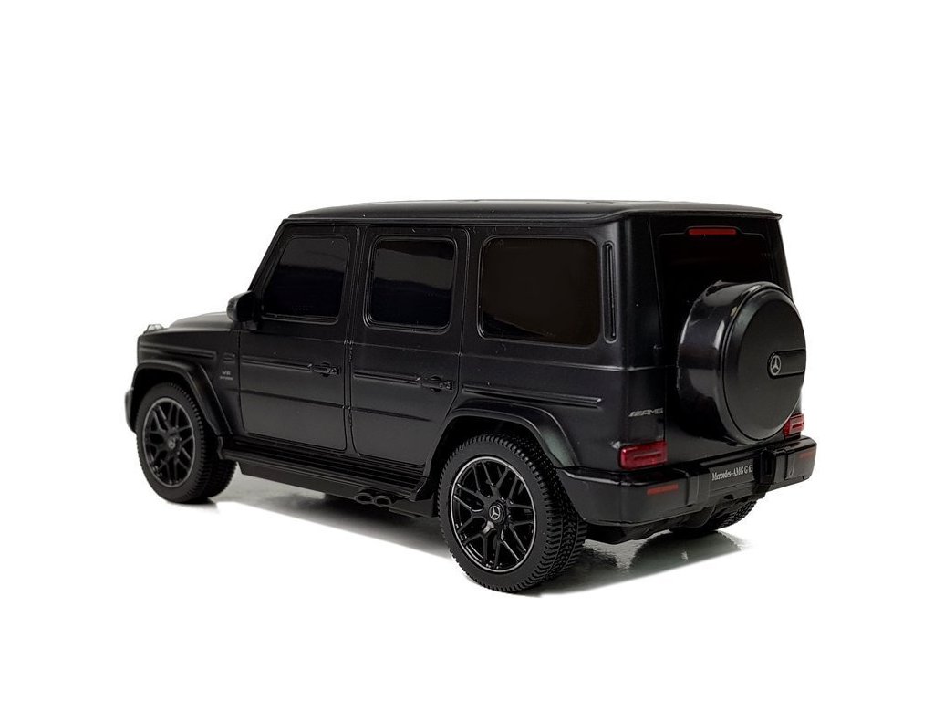 Vyobrazený model je MERCEDES AMG G63 v černé barvě, dokonale reprodukovaný s realistickým protějškem. Plášť je vyroben ze zesíleného plastu, gumová kola imitují pneumatiky a odpružení je tlumené.