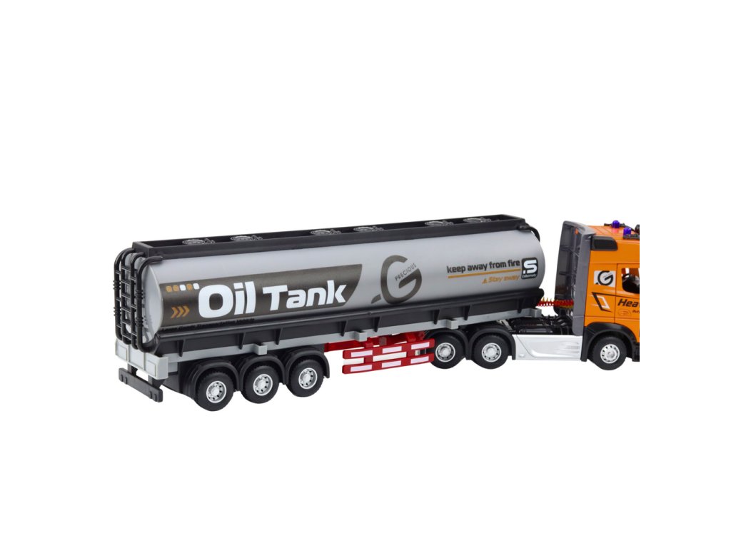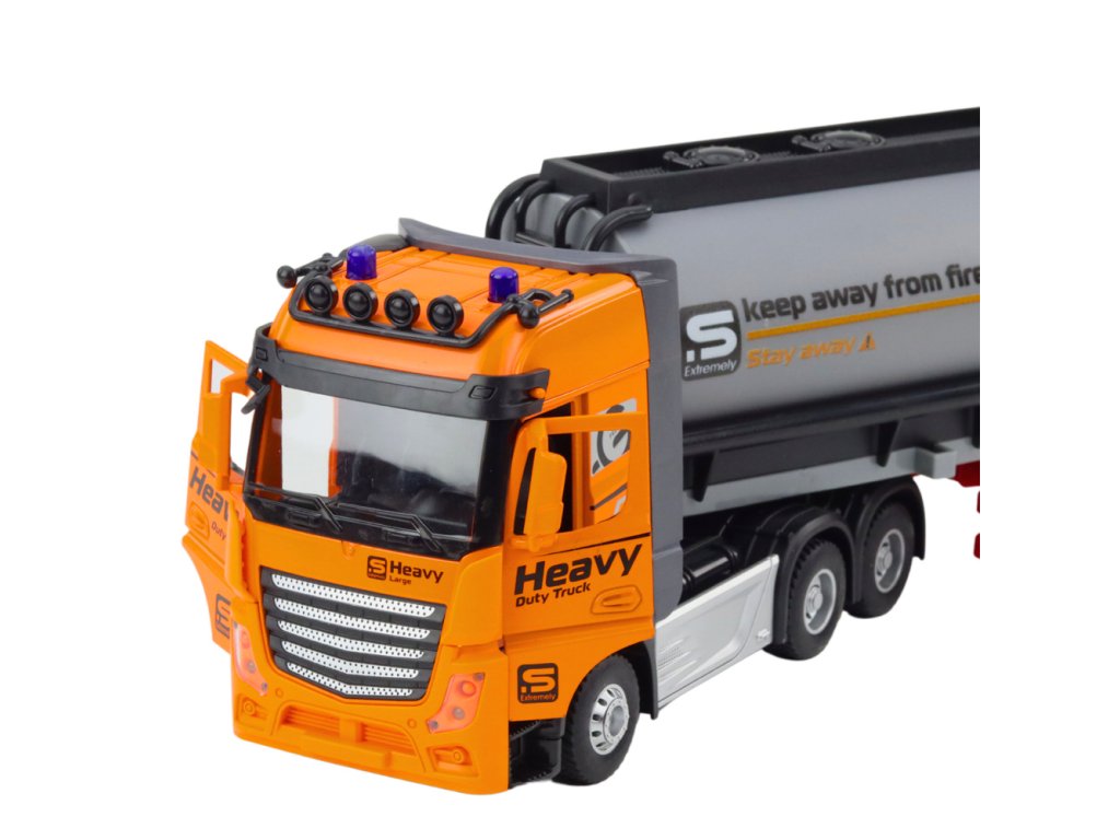 Cisterna je vybavena otevíracími dveřmi kabiny, světelnými a zvukovými efekty aktivovanými dálkovým ovládáním a výstražnými potisky, které doplňují dojem skutečného vozidla na přepravu paliva. Jeho oranžové a černé barvy, dynamické linie a pečlivě zpracované detaily přitahují pozornost a dodávají vozidlu jedinečný, profesionální charakter. Každý prvek, od kabiny řidiče až po nádrž, byl navržen tak, aby odrážel realitu.