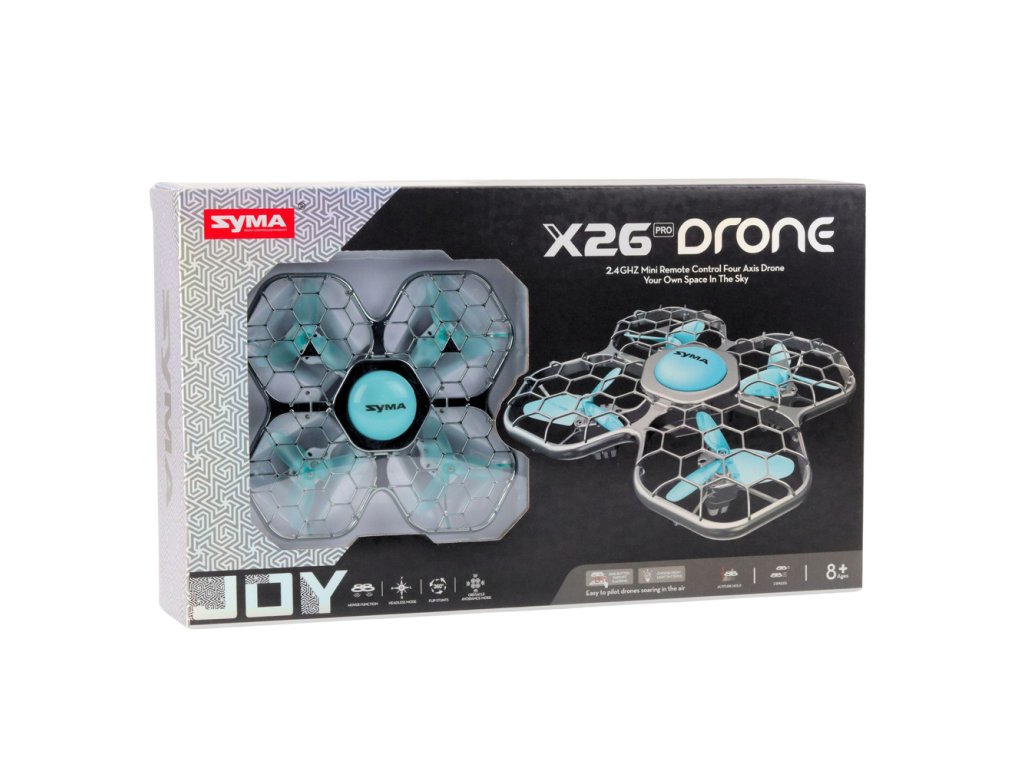 Syma X26 Pro je vybaven funkcí vznášení, bezhlavým režimem a režimem vyhýbání se překážkám, což výrazně zvyšuje pohodlí a bezpečnost. Dron navíc disponuje 16 předprogramovanými akrobaciemi, které vám umožní provádět velkolepé otočky a salta ve vzduchu. Barevné LED osvětlení mu dodává moderní vzhled a zlepšuje viditelnost během letu.
