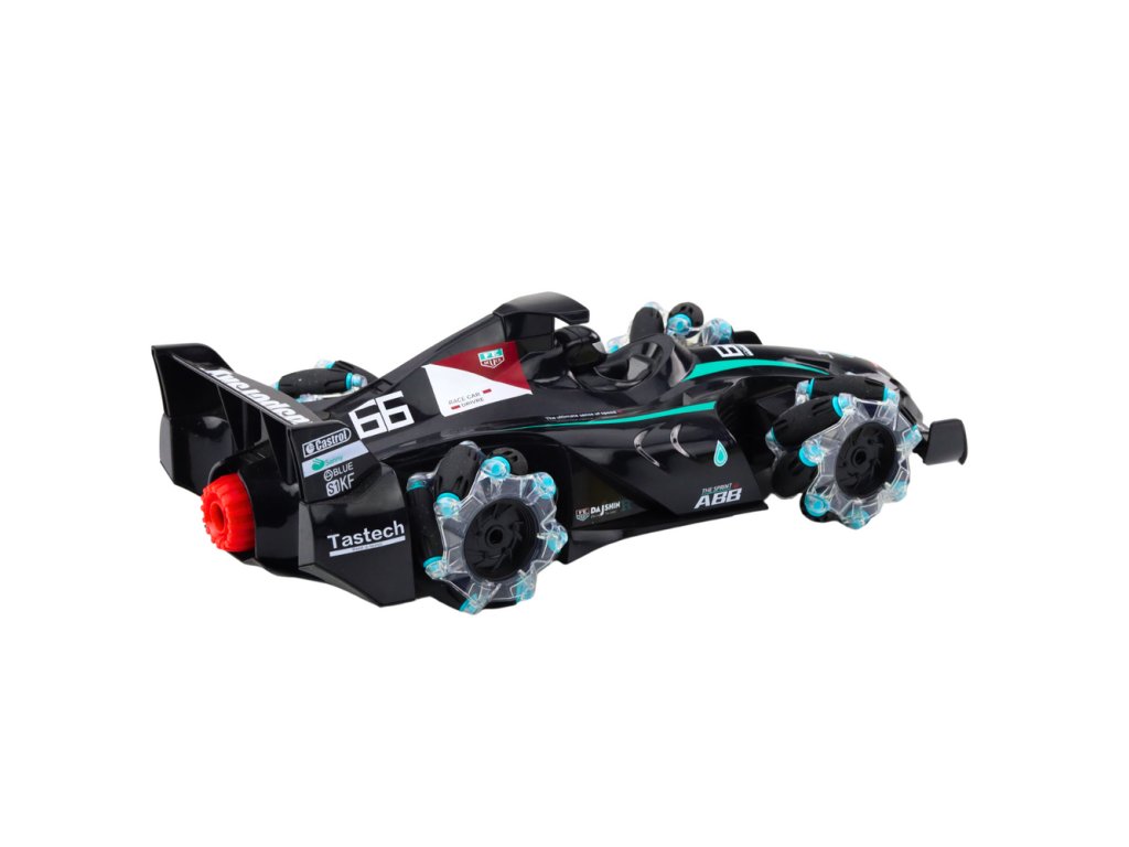 Skutečným poznávacím znakem tohoto modelu jsou inovativní kola se zabudovanými bočními válečky, která vozidlu umožňují nejen jízdu vpřed a vzad, ale také pohyb do stran a otáčení kolem vlastní osy. Díky tomu mohou děti provádět pokročilé manévry, driftovat a experimentovat se směry jízdy, což rozvíjí jejich koordinaci a představivost. Tento technologicky vyspělý závodník zaručuje nezapomenutelné okamžiky plné pohybu, světla a vzrušení jak při sólové hře, tak s vrstevníky.