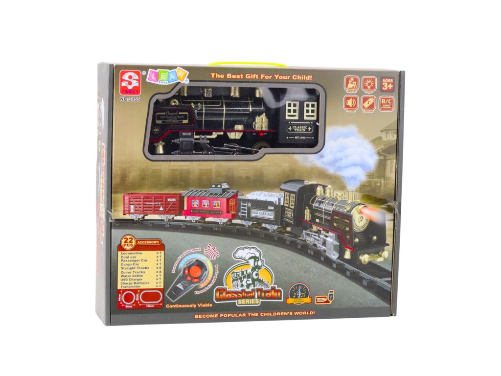 Elektrický vláček Classical Train je unikátní sada, která kombinuje klasickou estetiku historických parních lokomotiv s moderními prvky a poskytuje dětem neuvěřitelně poutavou a realistickou hru. Lokomotiva je navržena tak, aby věrně replikovala vzhled tradičních parních strojů, a možnost přidat vodu a aktivovat jemný parní efekt vytváří jedinečnou herní atmosféru. Světelná a provozní zvuky dále umocňují pocit z jízdy skutečného vlaku.