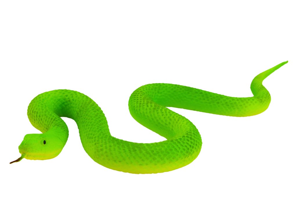 Pryžový had v jasně zelené barvě, který jistě upoutá pozornost svým realistickým a detailním zpracováním. Tento jedinečný model hada byl vytvořen s důrazem na nejmenší detaily, díky čemuž vypadá jako skutečné zvíře. Každý prvek, od textury kůže až po jemné povrchové úpravy, byl přesně reprodukován, aby byl zajištěn autentický vzhled.