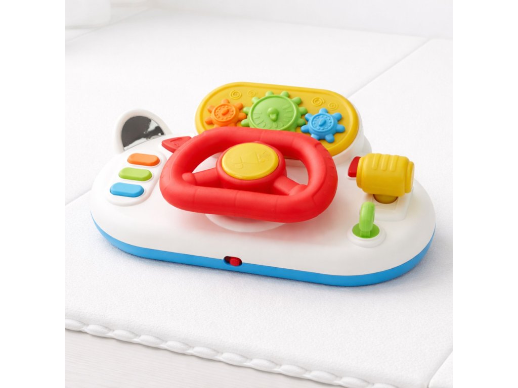 Tento interaktivní volant pro děti je vzdělávací senzorická hračka, která umožňuje batolatům vžít se do role řidiče a bezpečně napodobit řízení auta. Byl navržen s ohledem na nejmladší uživatele a nabízí řadu pohyblivých částí, zvukových a světelných efektů, které stimulují zvědavost a povzbuzují k aktivní hře. Barevný design a realistické rozložení prvků děti rychle zaujmou.