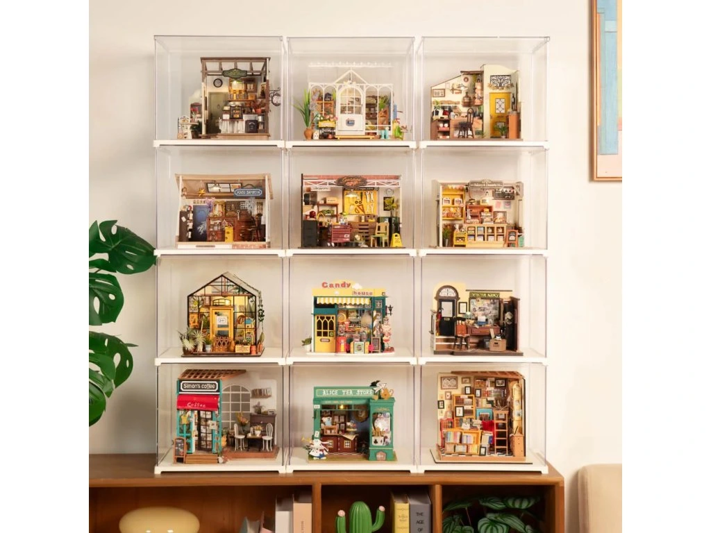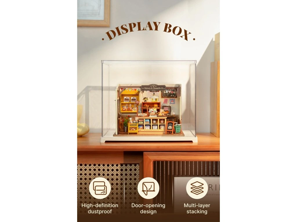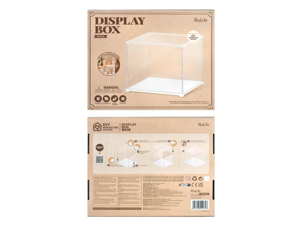 Ochraňte své výtvory před prachem a nečistotami díky stohovatelnému boxu, který je vhodný pro všechny miniaturní domečky DG kromě DG12. Má otevírací přední stěnu pro snadný přístup, je jednoduše sestavitelný a na sebe je možné naskládat až 6 kusů. Displej je vyroben z ABS plastu, má oblé hrany a rohy. Hlavní vlastnosti: pro miniatury domečků DG, kromě DG12ochrana před prachemjednoduchá montážstohovatelnýDoplňkové parametry