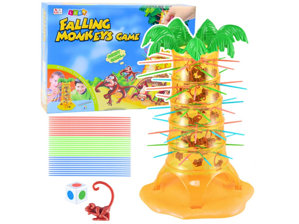 Hra "Skákající padající opice" je ideální nabídkou pro celou rodinu. Tato barevná a vzrušující dovednostní hra učí koncentraci, logickému myšlení a obratnosti. Stačí prostrčit kmenem palmy barevné tyčinky, pověsit na ně opice a začít hru!