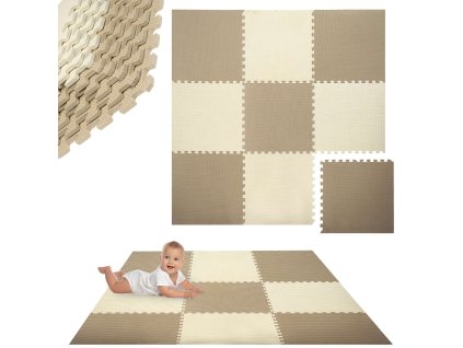 Humbi pěnová podlahová rohož 180x180 Velká voděodolná bezpečná pěnová skládačka 9 ks krémová, béžová