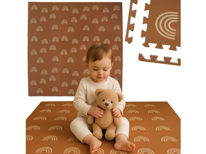 Humbi pěnová podlahová rohož 180x180 Velké voděodolné bezpečné pěnové puzzle 9 ks hnědé oblouky duha